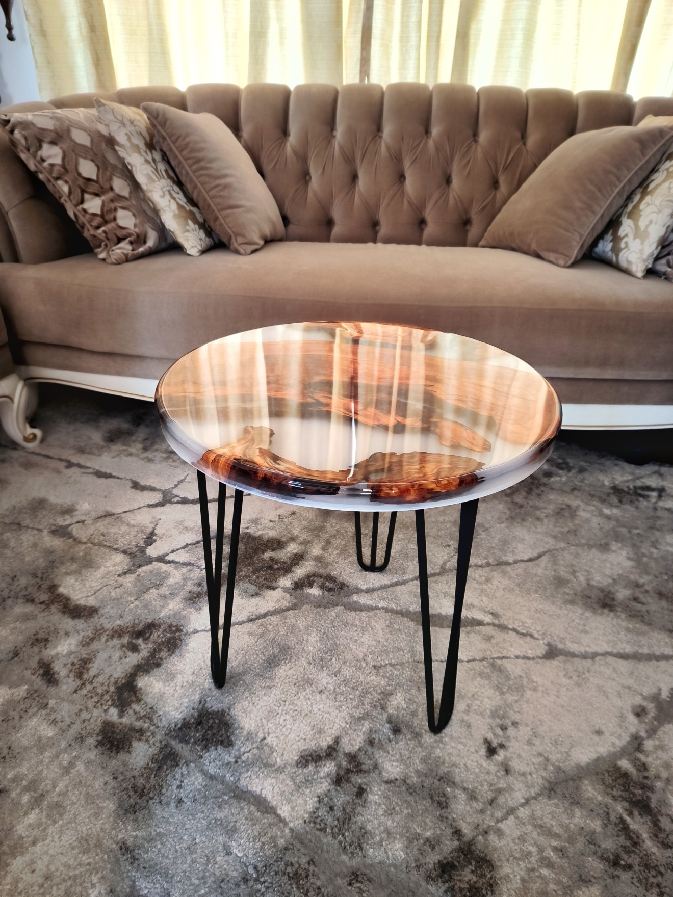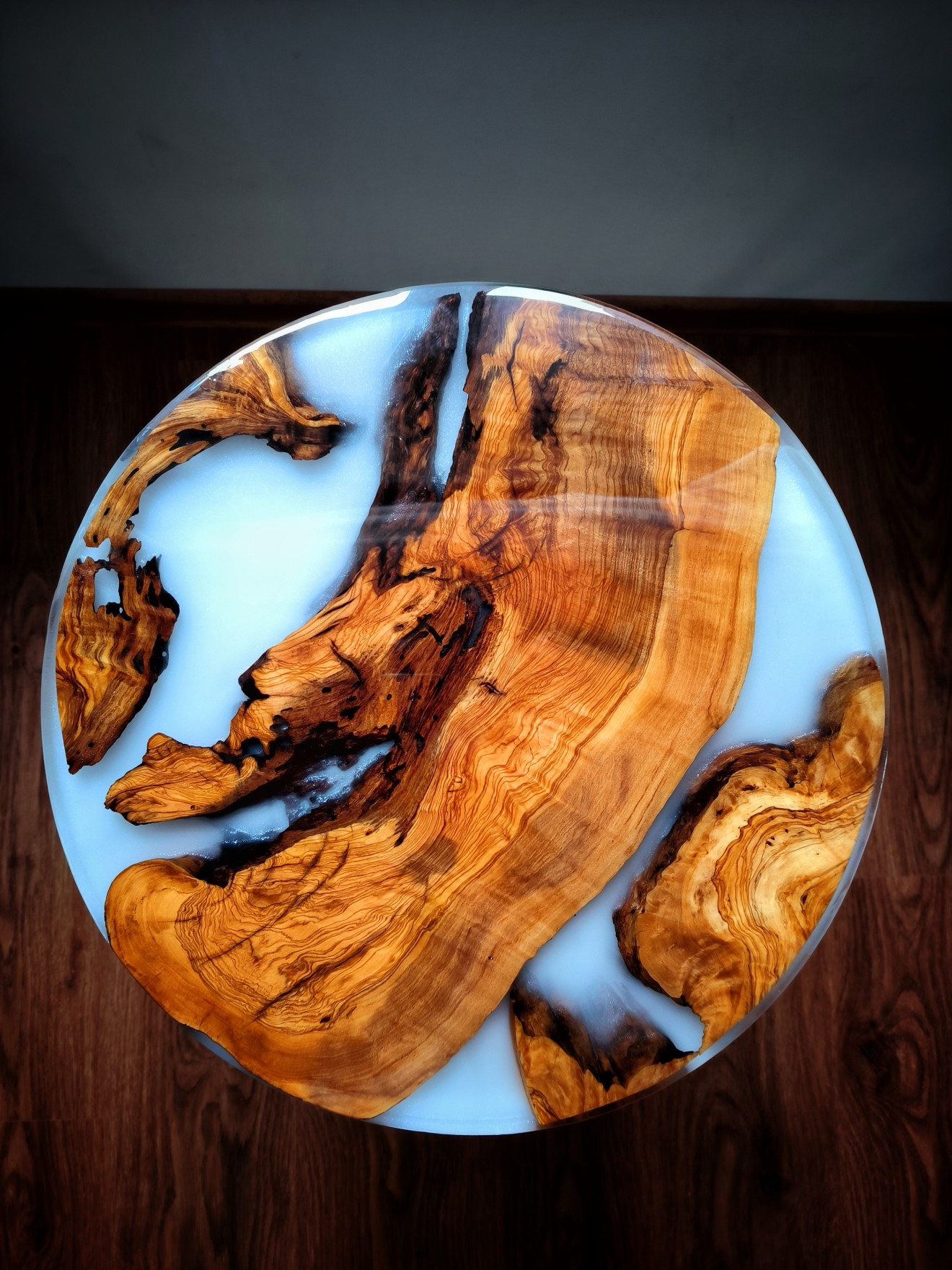 Елегантна холна маса, която впечатлява с комбинацията от естествена маслинова дървесина и модерна бяла основа с фина текстура. Дизайнът съчетава топлината на природните материали с изчистен съвременен стил, придавайки на интериора усещане за хармония и характер. Предлага се с възможност за стандартна или по-висока височина на краката – според вашия вкус и пространство. ● Размери: Ø50 см / височина 47 см