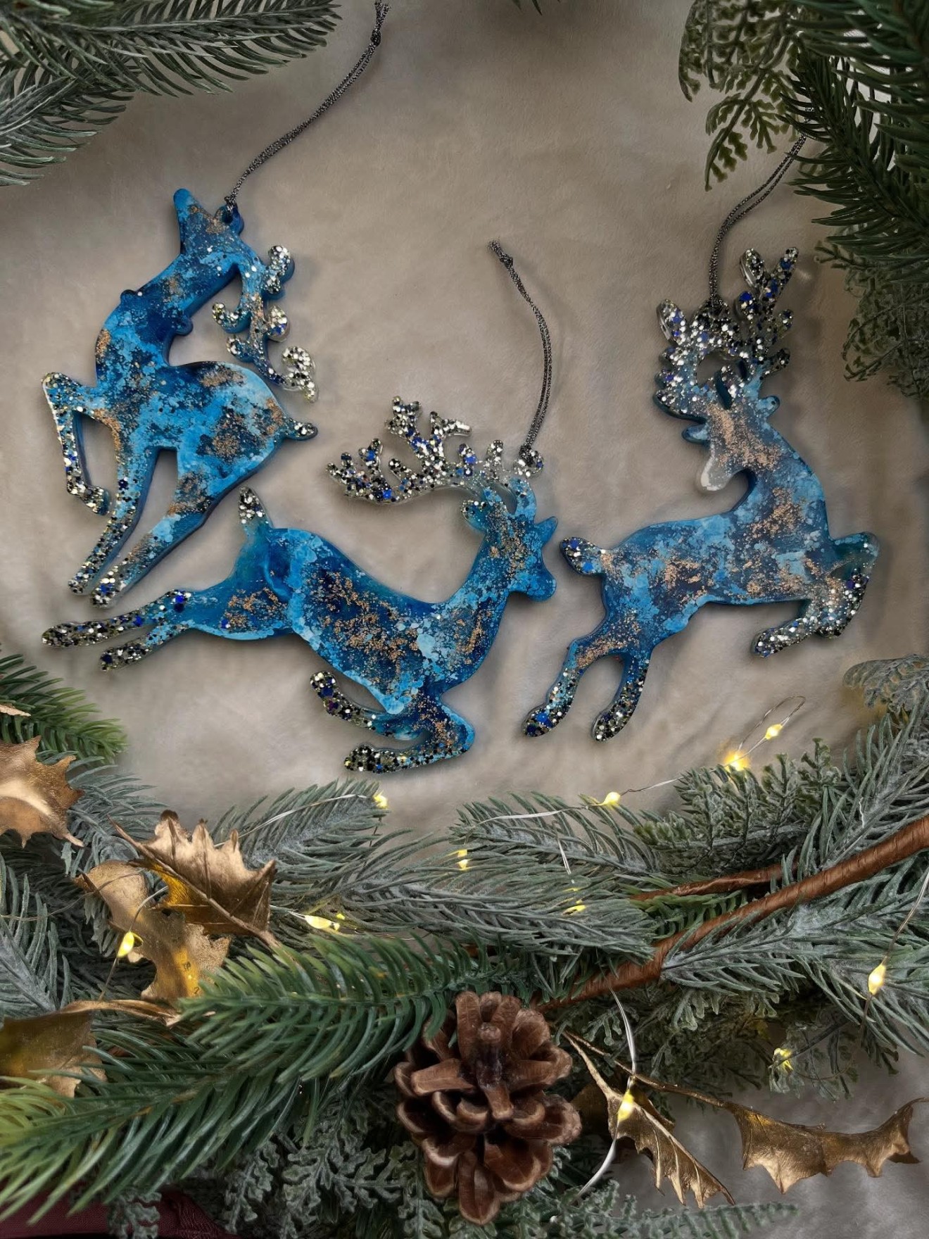 С нетърпение искаме да Ви представим новите ни предложения за коледни висулки под формата на еленчета 😍 Този комплект е изработен в син и бял цвят,а златистият брокат завършва напълно перфектно висулките. ✅Всички моделчета са уникални и неповторими сами по себе си. ✅Продават се,както индивидуално,така и в комплект. ✅Могат да бъдат изработени в цветове по Ваш избор. За повече информация,може да ни пишете на ЛС 📩