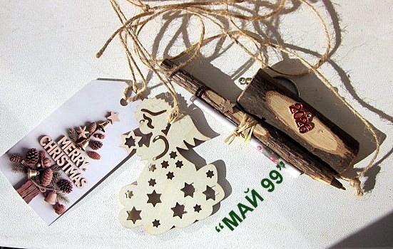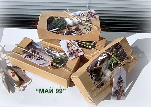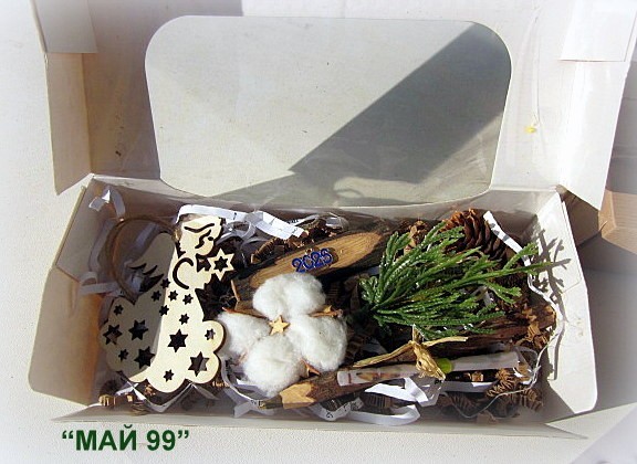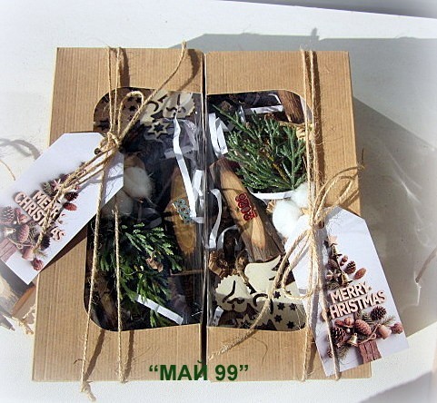 Кутия от картон 20/9/4.5 см. с прозрачен капак и къдрава хартия пълна с коледни изненади- дървено ангелче,дървен ключодържател с мет.надпис 2026 г.,дървена химикалка с коледен късмет,памук,зелено клонче,мини шишарка,коледен етикет с канап. Чудесният подарък за колеги и приятели!