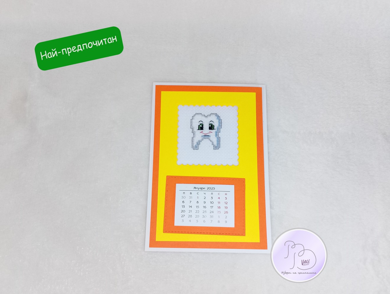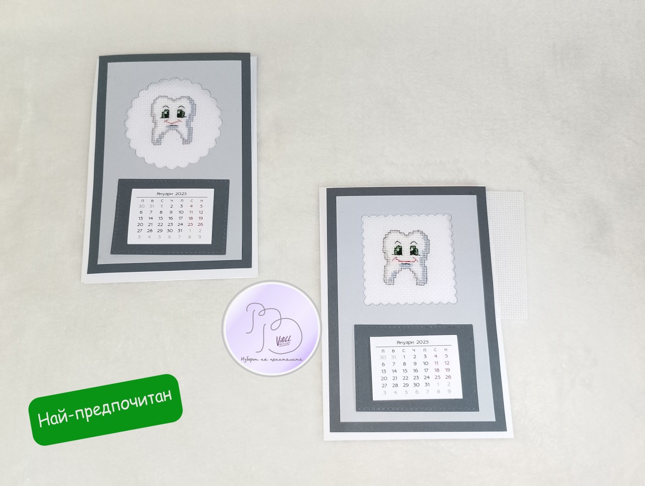 Изразете своята благодарност и усмихнете своя лекар дентална медицина(стоматолог) със символичен и практичен подадарък-календар с ръчна бродерия за новата 2026 година. Заявете го отрано, спестете време и напрежение и ще го получите навреме за коледно-новогодишните празници или според уречен от Вас срок през ноември и декември. Приблизителни размери: 21х15 см. Материал: -картон; -плат панама; -конци за бродерия; -лепило; Може да се изработи и за друг лекар-специалист, друга професия, хоби и тема с други бродирани мотиви. Времето за изработка е ориентировъчно, зависи от наличните материали и доставки. Цена:15.00 лв./7.67 евро/ 1 календар. Доставка до офис на Еконт за сметка на получател. 10% от цената дарявам за развитието на платформата!