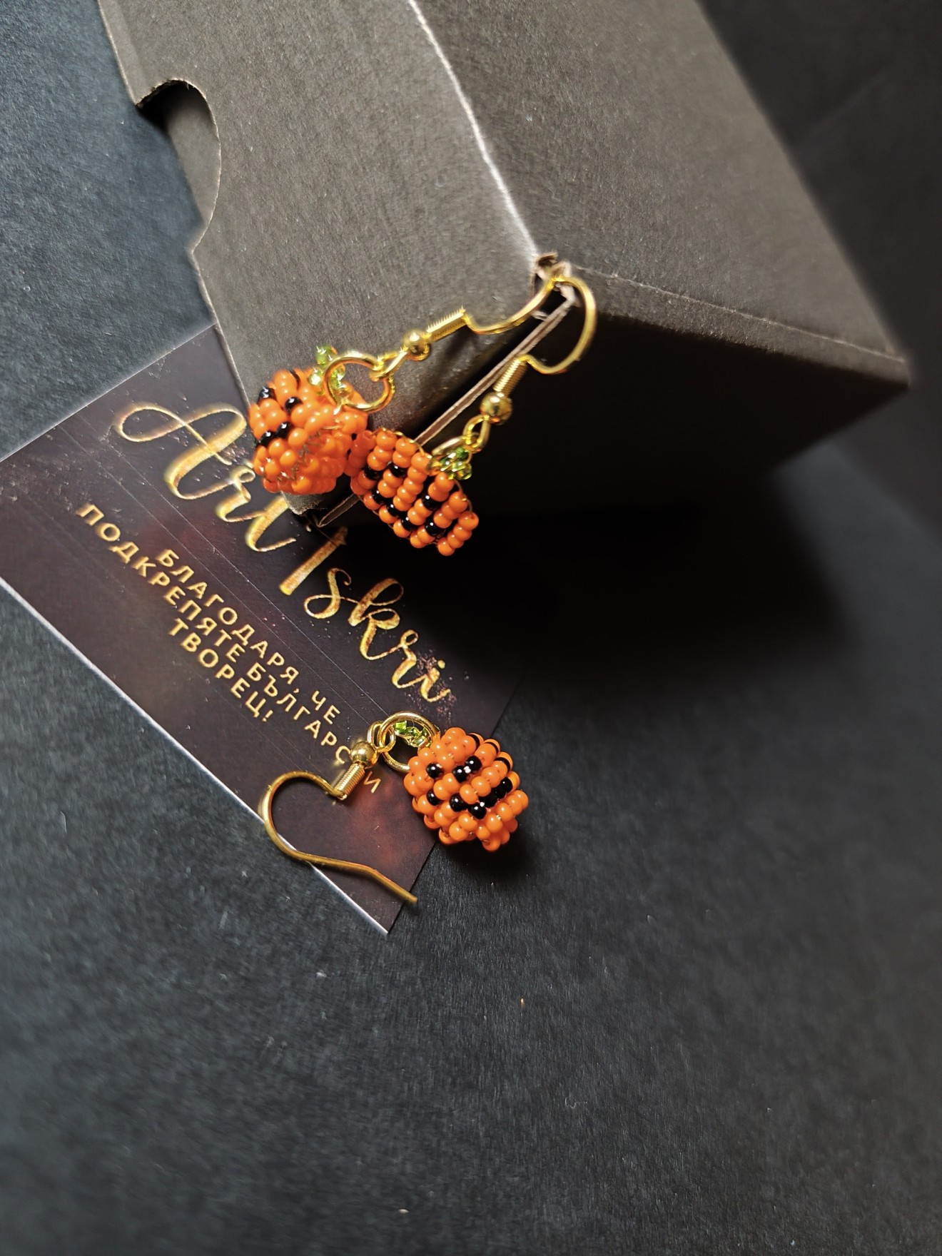 🧡 Весели обеци с тикви за Хелуин . 🧡 Изработени от чешки мъниста Орнела 2 мм , стоманени кукички и много усмивки! 🧡Налични по 1 чифт от всеки вид.🧡