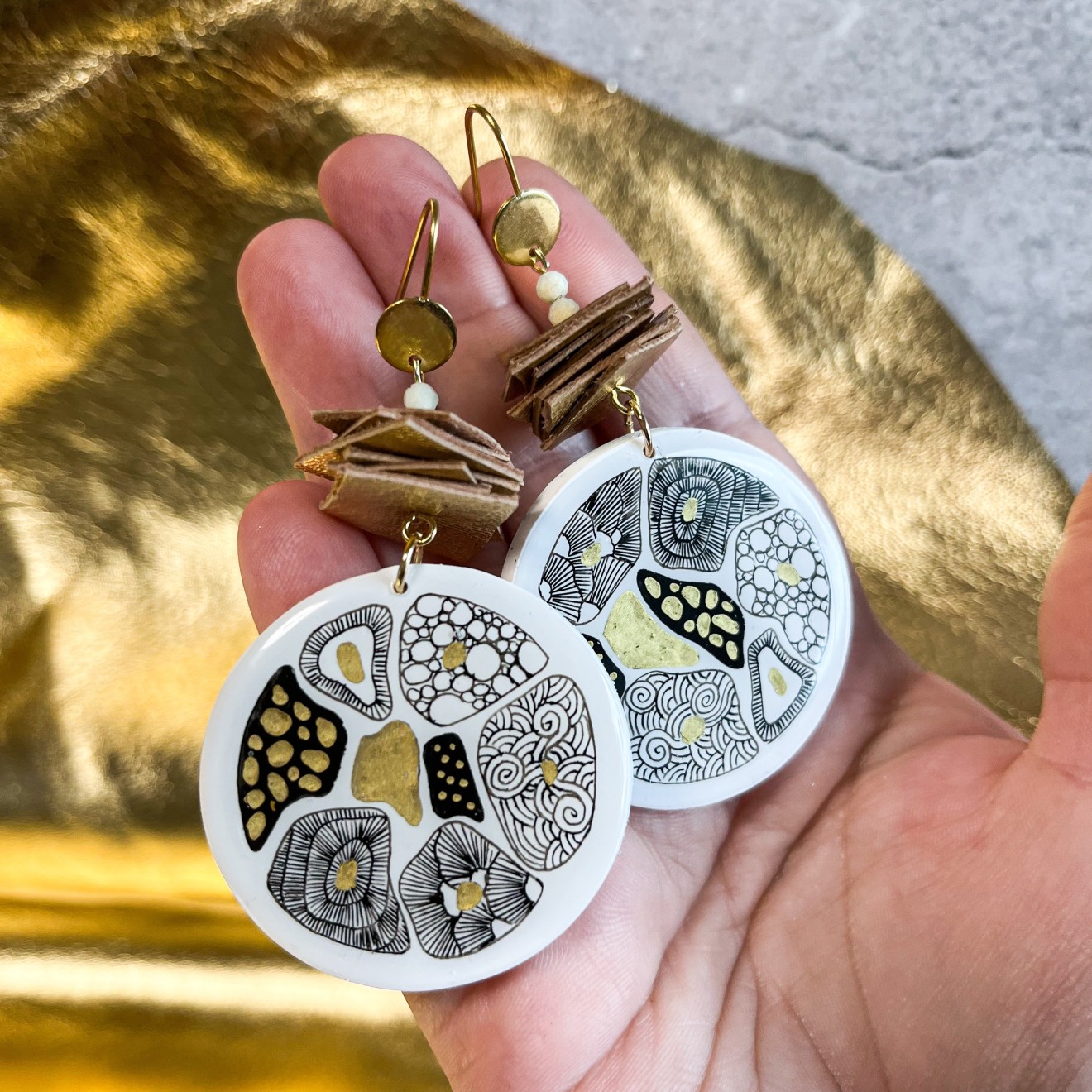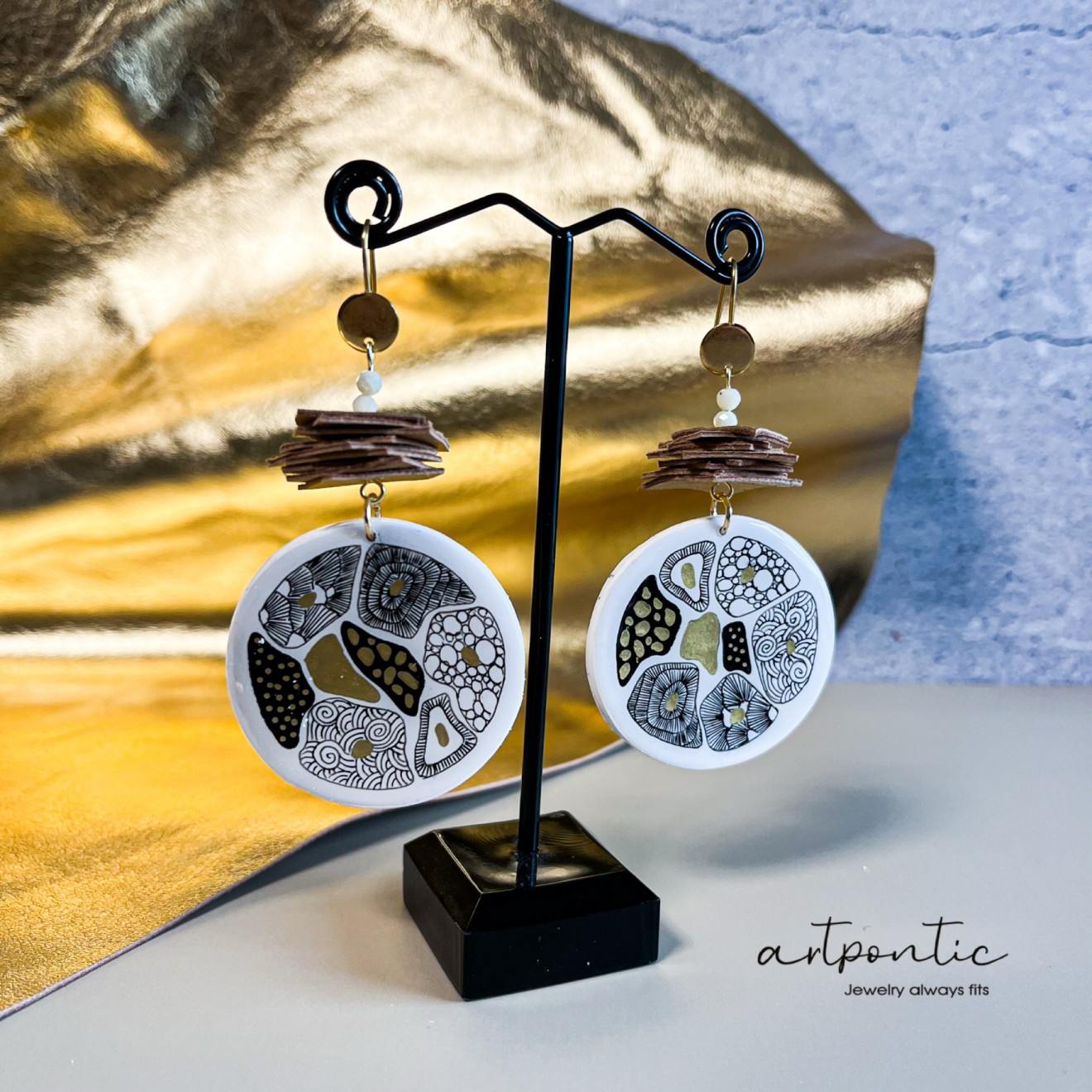 Изцяло ръчно рисувани, декорирани със златен варак и елементи от кожа.Изключително трудни за изработка, невъзможни за повтаряне. Щифта е стомана.