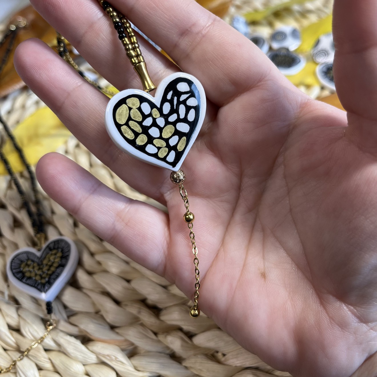 изработени от рисувана висулка и стъклени мъниста. Елементите са стомана.
