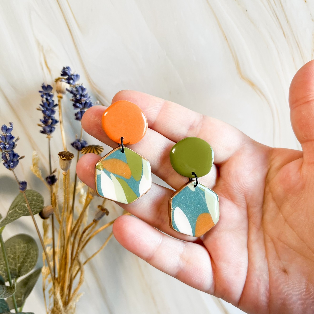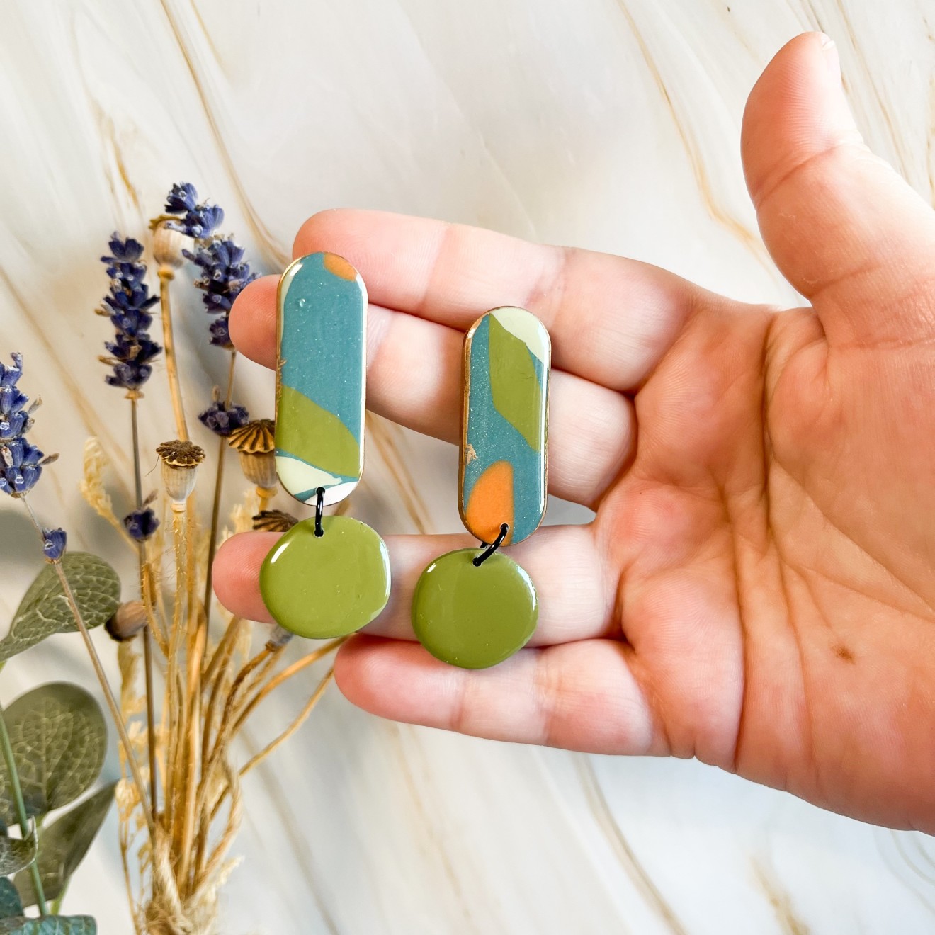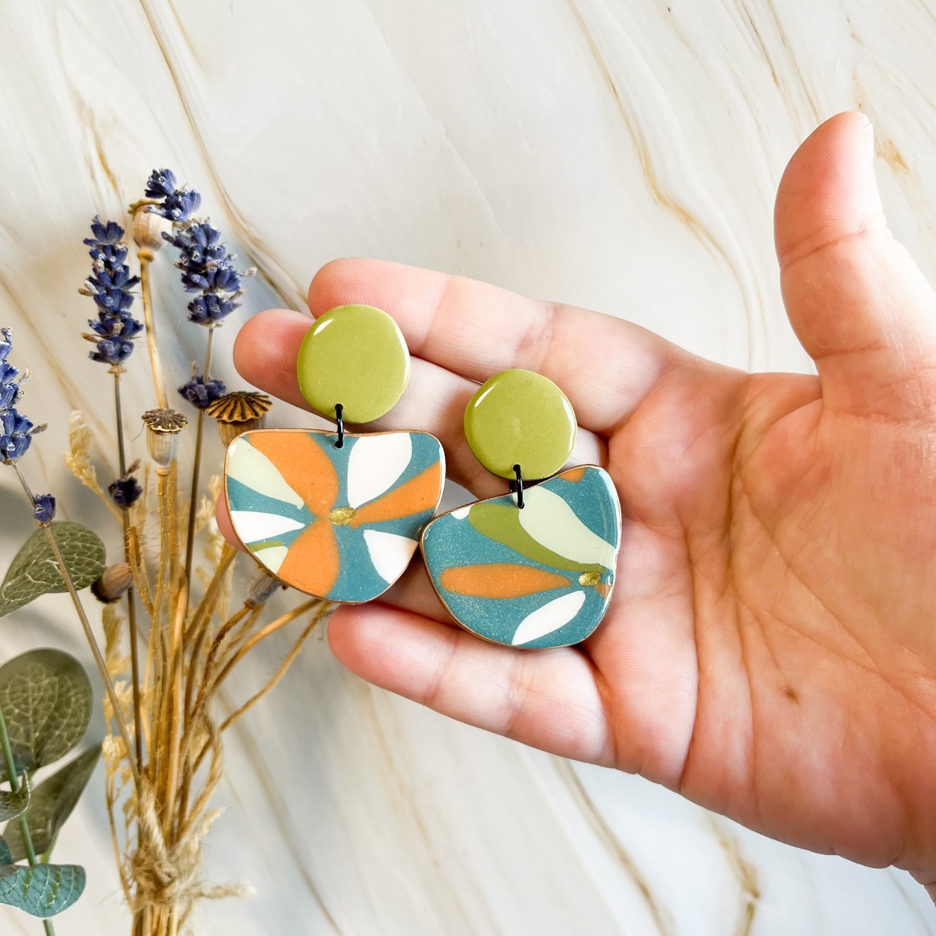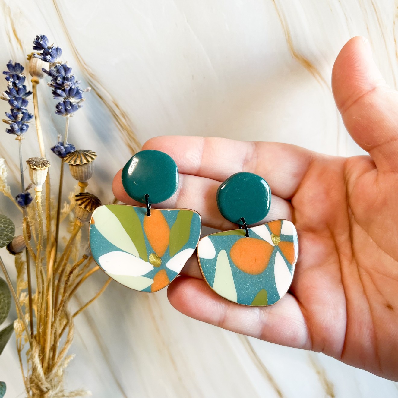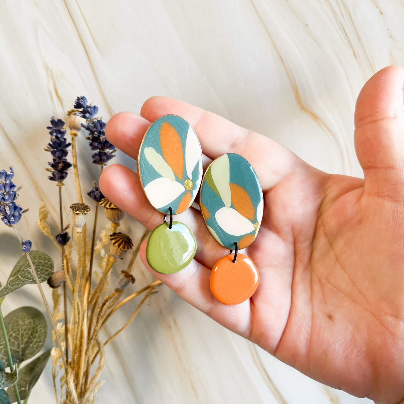 разкошни, ръчно смесени цветове. Петрол, оранж и зелено. Леки и удобни а стоманен щифт!