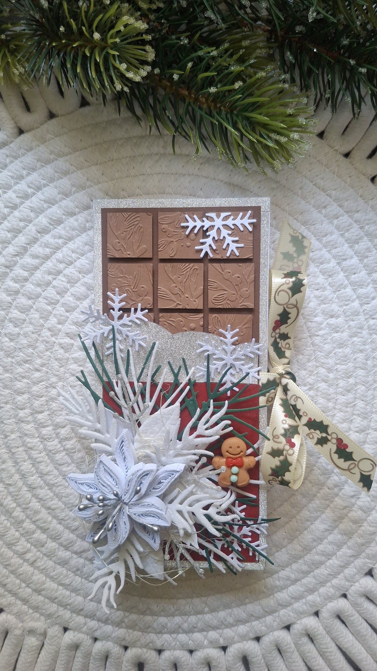 Празниците винаги идват с аромат на сладки спомени, топли усмивки и, разбира се… шоколад! 🍫 А когато шоколадът е „опакован“ в картичка – получаваме най-уютния и различен подарък. Тази картичка шоколад е идеална за всеки, на когото искате да подарите нещо мъничко, но специално: ✨ За колеги и колежки – да внесете празнично настроение в офиса. ✨ За приятели – малък жест, който казва „мисля за теб“. ✨ За учители, треньори или класни ръководители – защото заслужават нещо лично и красиво. ✨ За размяната на подаръци в училище, на работа или в компанията на приятели. ✨ За съседа, който винаги ви усмихва с „добро утро“. ✨ А защо не и за семейството или за вас самите – защото и вие заслужавате коледна сладост! Понякога най-милите подаръци са тези, които носят усмивка, без да са големи и сложни. 👉 Картичката е без шоколад.