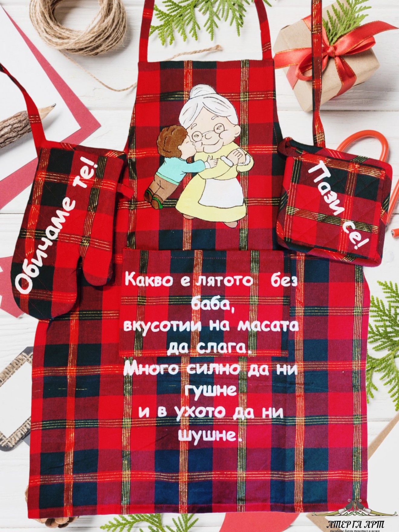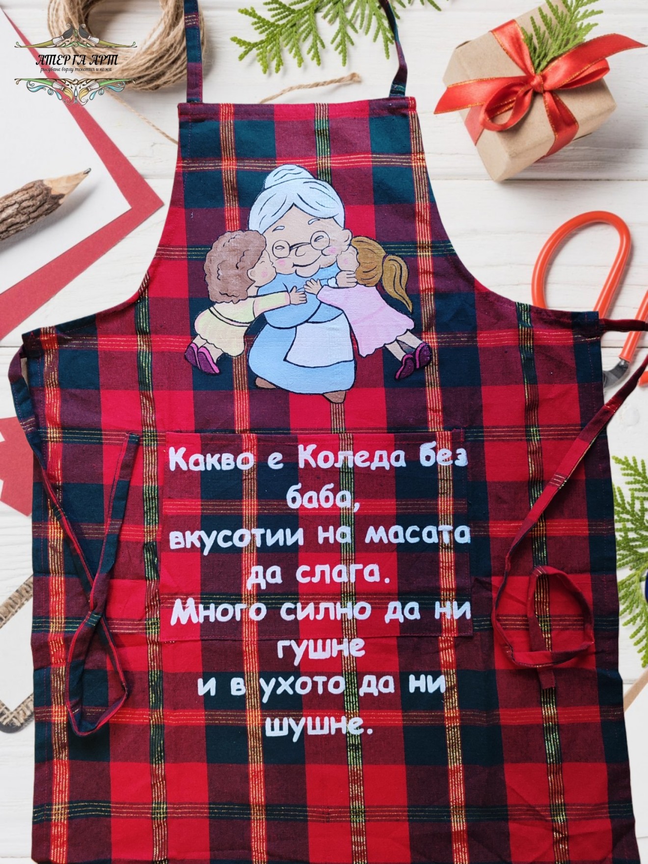 🎅👵 Коледа без баба просто не е същата! ❤️ Всяка престилка е рисувана на ръка и персонализирана според внучетата – уникален подарък, пълен с любов и уют. 🎁✨ Бройките и тази година са ограничени, така че запазете навреме! 🎄
