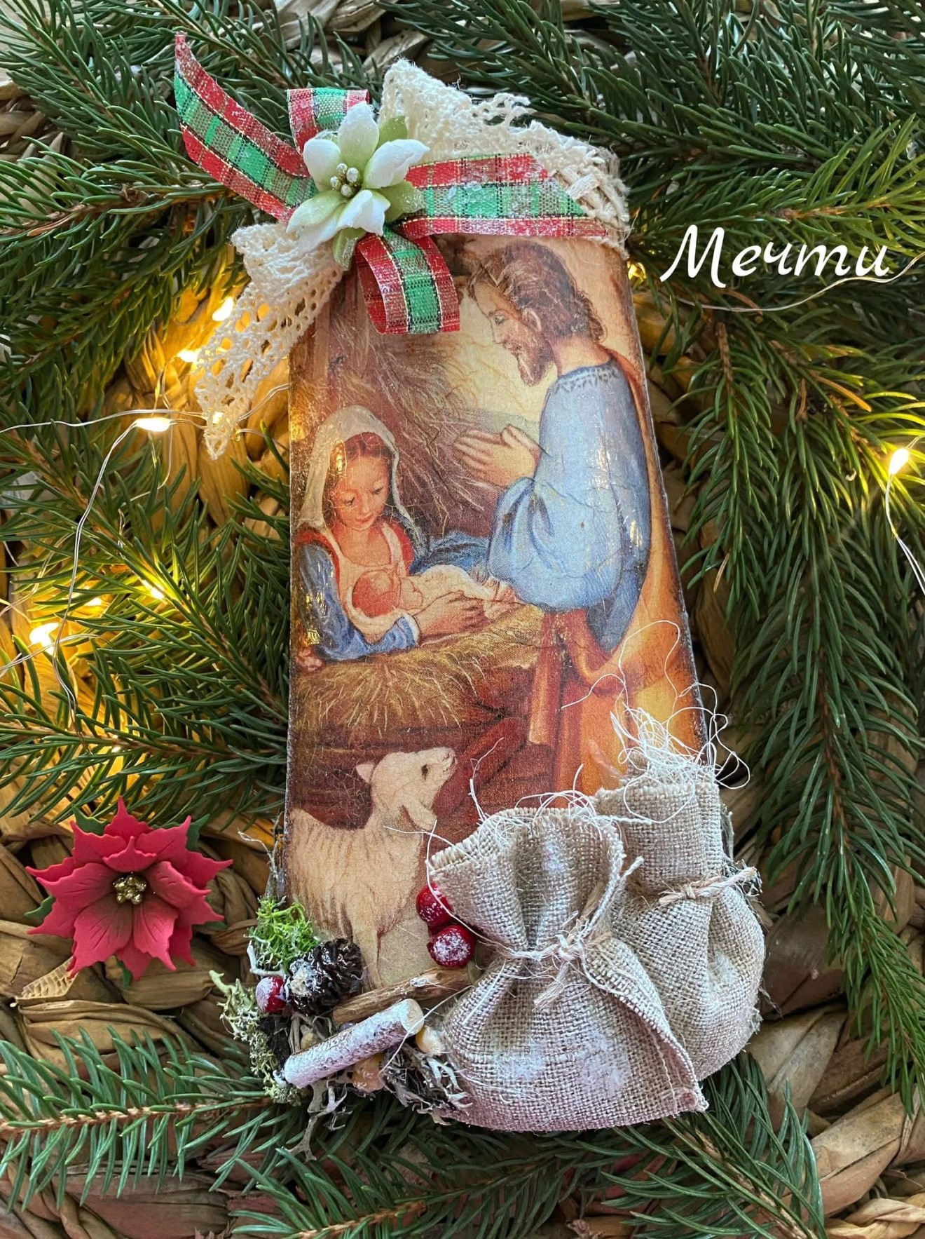 Керамични керемидки с Рождество, декорирани с декупаж, дантели, панделки, зебло, канап, мъх, ръчно изработена коледна звездичка и какво ли още не… Размери; дължина 22,5см. широчина 8,5см. горе и 12,5см. долу Цена-42лв. за брой #handmade #ръчнаизработка #коледа #рождество #декорация #керемиди #коледенподарък #коледнаукраса