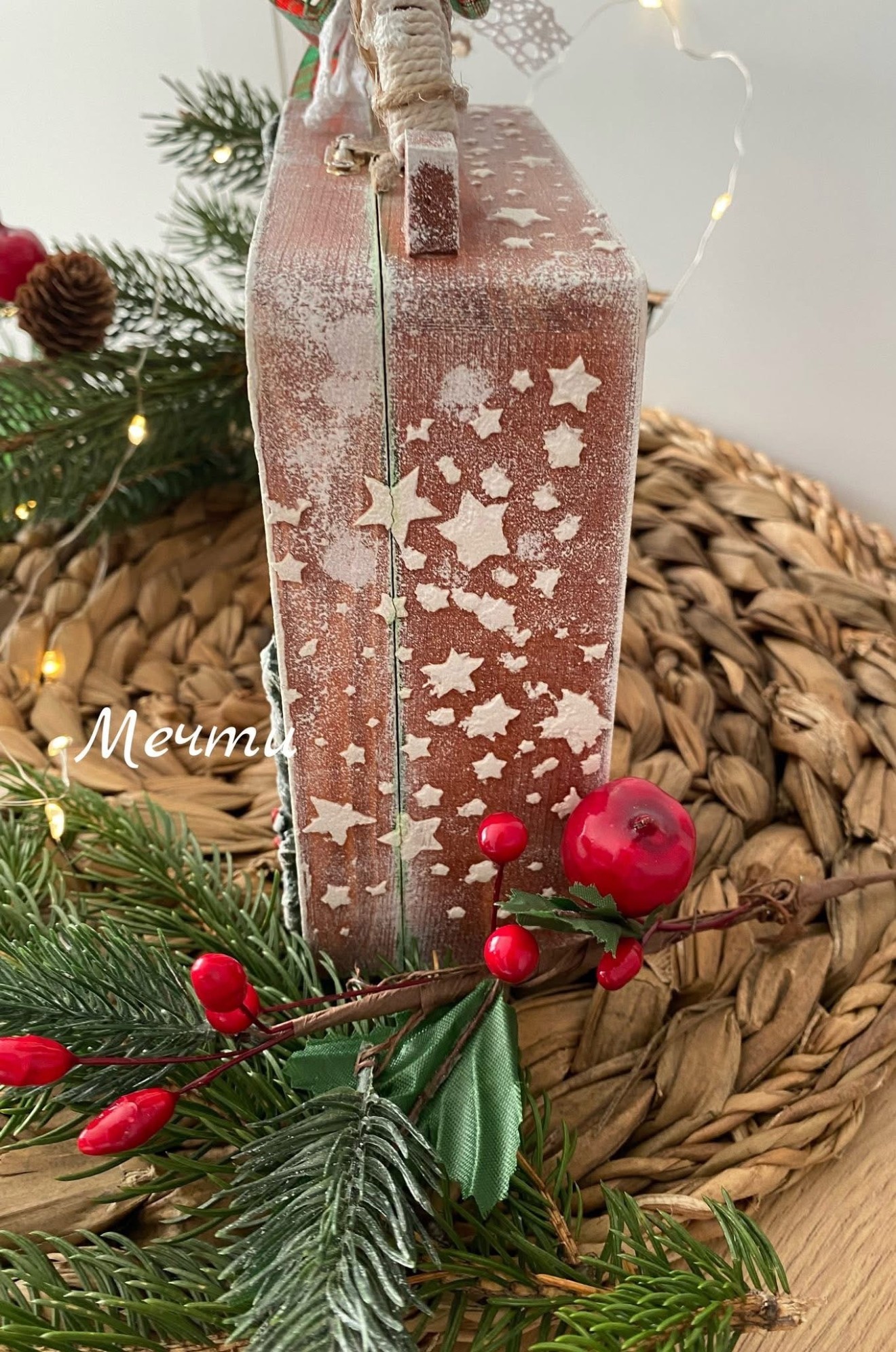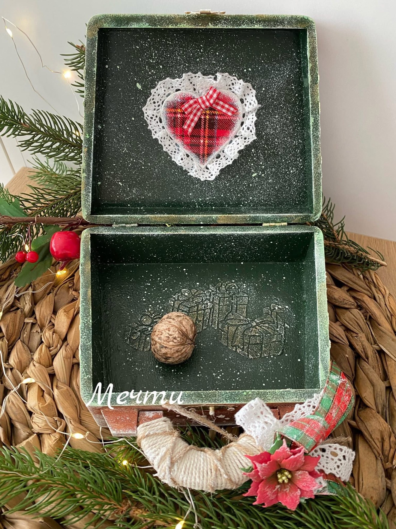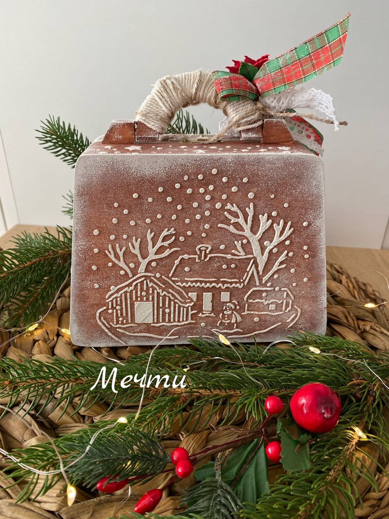 Дървена кутия, декорирана с декупаж, пластични елементи, канап, панделки, дантела 🎄🎁❄️🎅🏼🎄🎄 Размери; горна част-14см. долна част-18см. височина-13,5см. дълбочина-6см. #ръчнаизработка #handmade #коледнаукраса #декорация #коледенподарък #кутия #чантичка