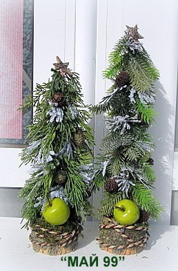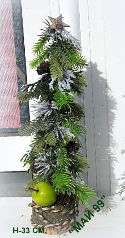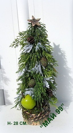 Ръчно изработена зелена елха на пънче/имитация дърво от борови и елхови изкуствени клонки,натурален шнур и зелена ябълка с 2 височини 28 и 33 см. Цена Н 28 см.- 12.71 лв/6.5е/ Н 33 см.-15.65/8 е/