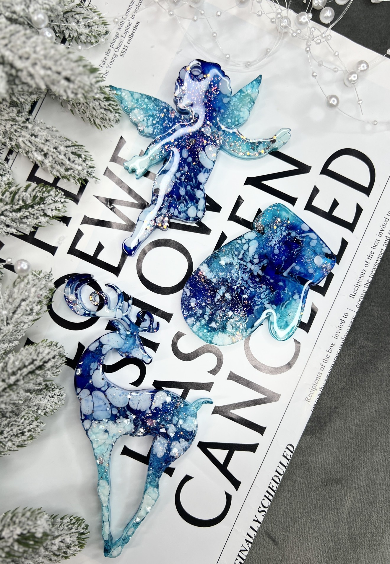 Зимна магия, уловена в капка смола 💙 Коледни орнаменти от епоксидна смола включена подаръчна опаковка Могат да се изработят и в различни цветове
