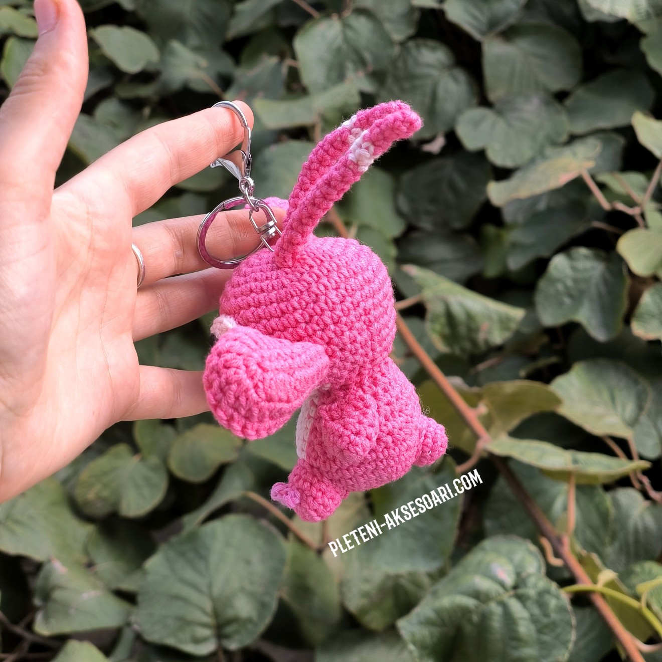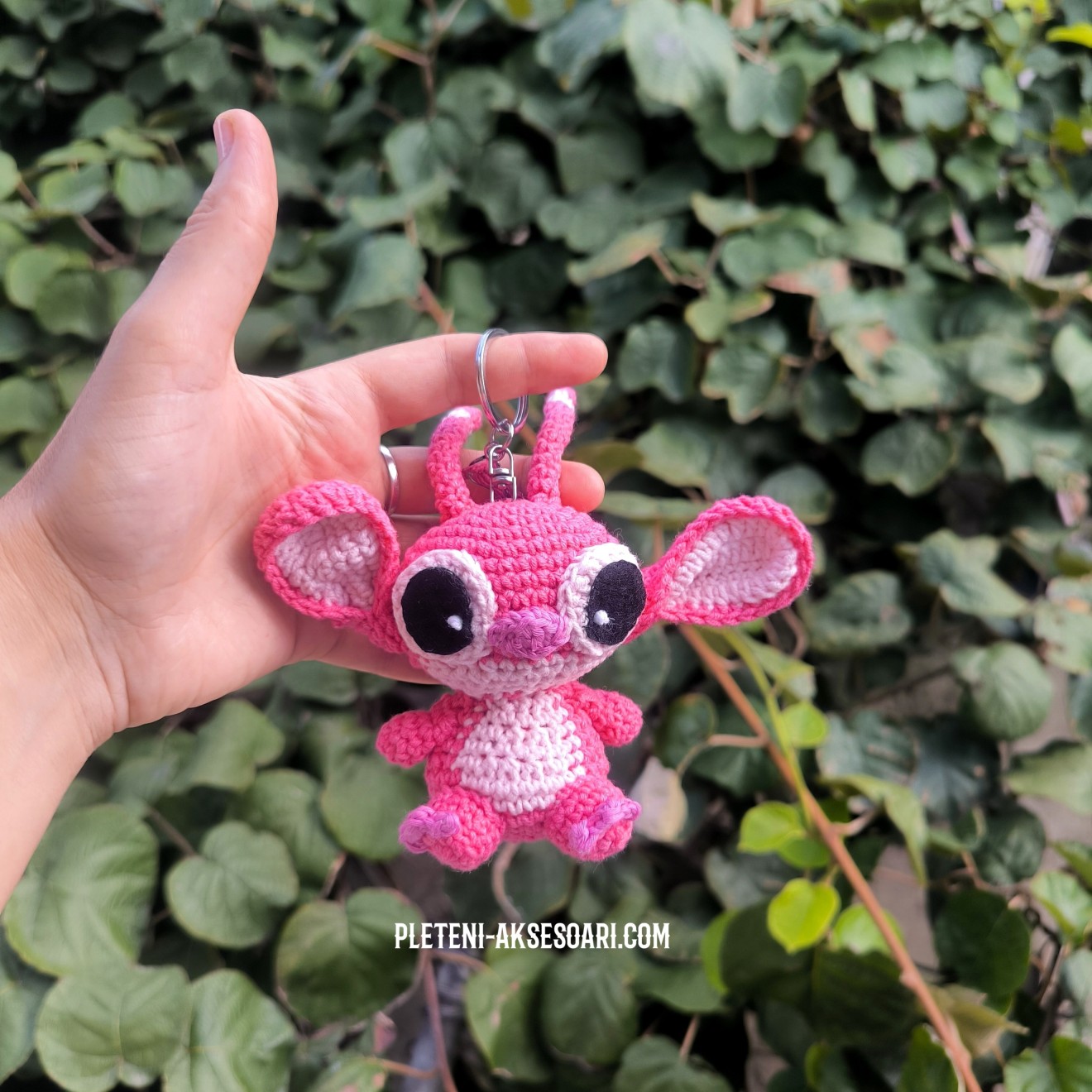 Ръчно изработен, плетен ключодържател Ейнджъл или така известния розов Стич ;) Висок 12 см. + 5 см метална част Страхоте аксесоар за раница, чанта, дънки ;)