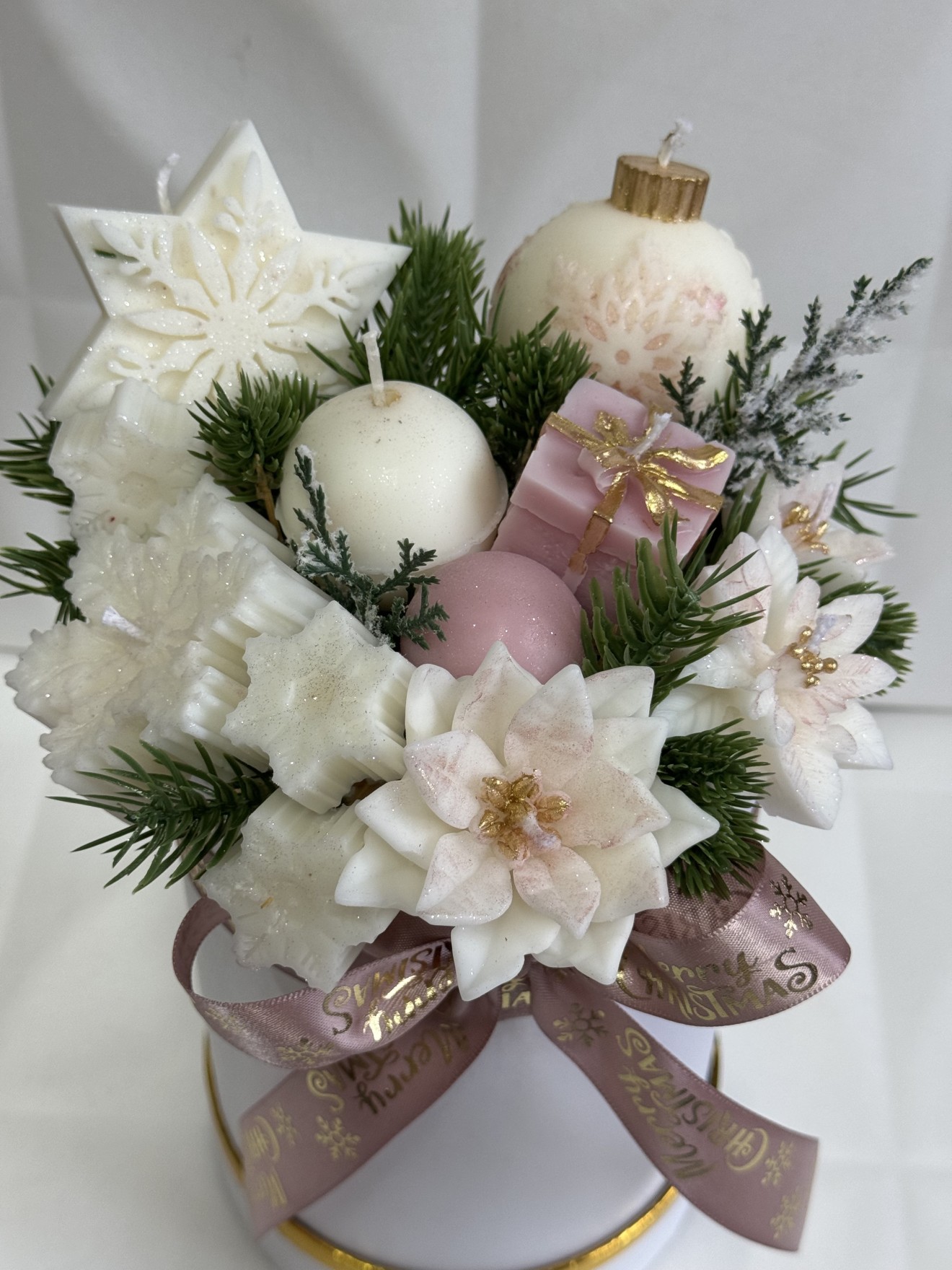 🎁Коледните кутии с ароматни соеви свещи, тази година отново ще имате възможност да направите своята поръчка с която да зарадвате любим човек или себе си с нови модели и уникални аромати✨✨✨ ✅Всяка аранжировка е с общ грамаж на свещи 350гр соев восък ✅Аромати: -греяно вино🍷 -ванилова захарна бисквитка🍪 -коледна магия✨ -джинджифилово карамелен мус🍮 -коледен сладкиш🥮 -кедър и канела🪵 ✅Цена 42 лв/ ✅изработват се по поръчка Чудесен коледен подарък за любители на аромати и свещи