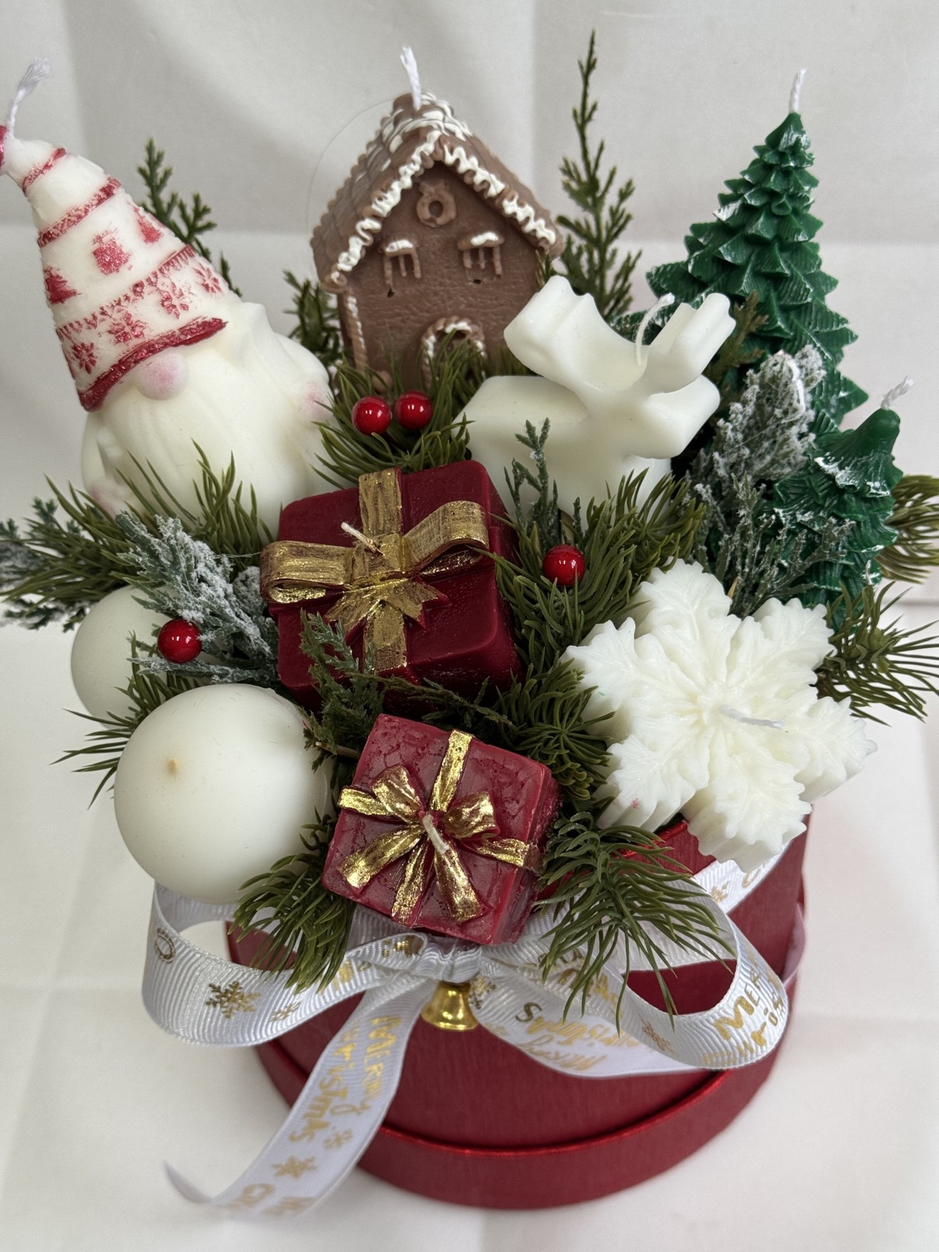 🎁Коледните кутии с ароматни соеви свещи, тази година отново ще имате възможност да направите своята поръчка с която да зарадвате любим човек или себе си с нови модели и уникални аромати✨✨✨ ✅Всяка аранжировка е с общ грамаж на свещи 450гр соев восък ✅Аромати: -греяно вино🍷 -ванилова захарна бисквитка🍪 -коледна магия✨ -джинджифилово карамелен мус🍮 -коледен сладкиш🥮 -кедър и канела🪵 ✅Цена 55лв ✅изработват се по поръчка Чудесен коледен подарък за любители на аромати и свещи