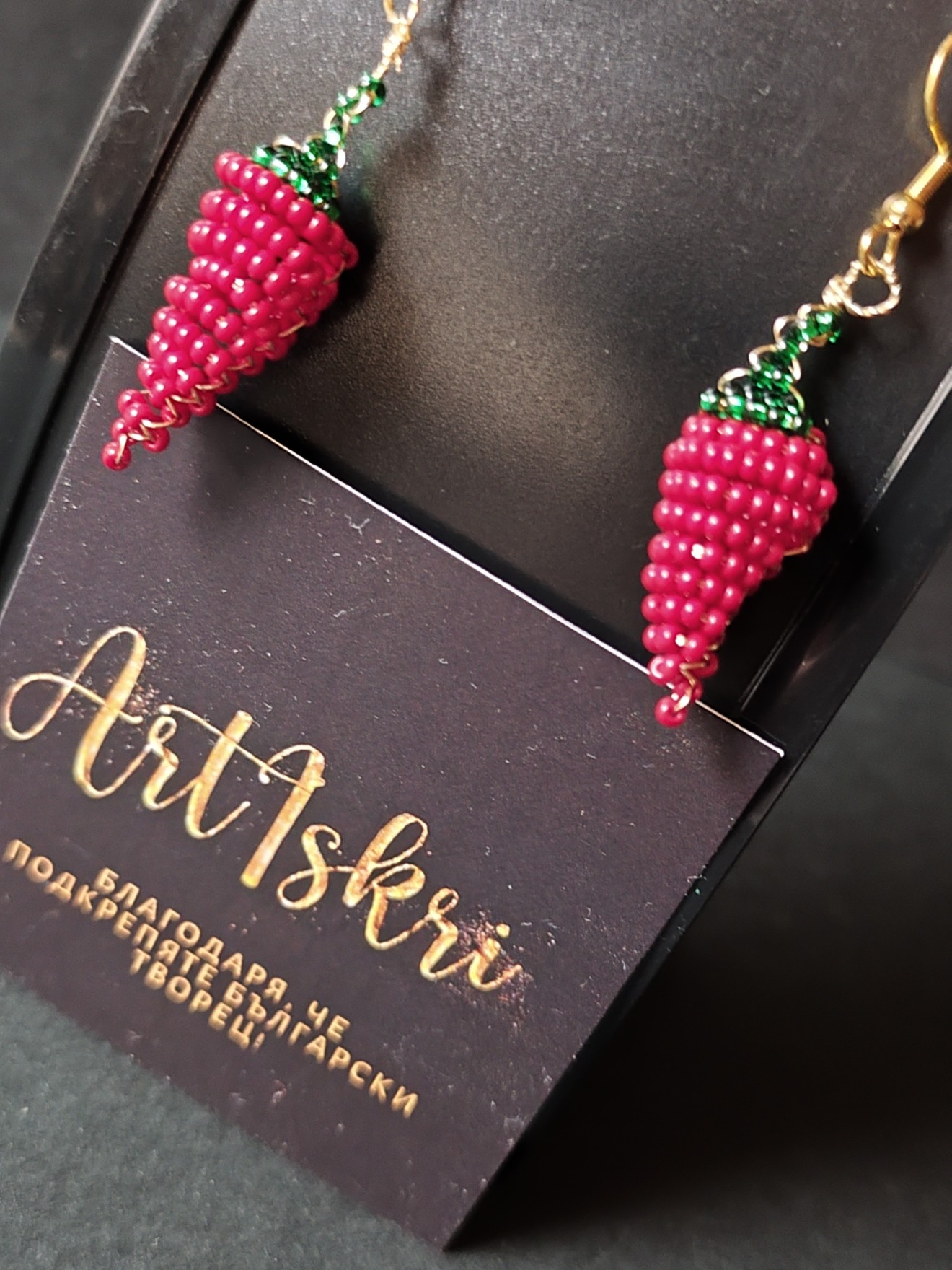 🌶️ Този сет бижута е изработен с много любов и внимание към детайла от чешки мъниста Орнела и стомана. Дължина на висулките чушки - 3 см . Дължина на колието в случая 45 см . Изработва се по желание .🌶️