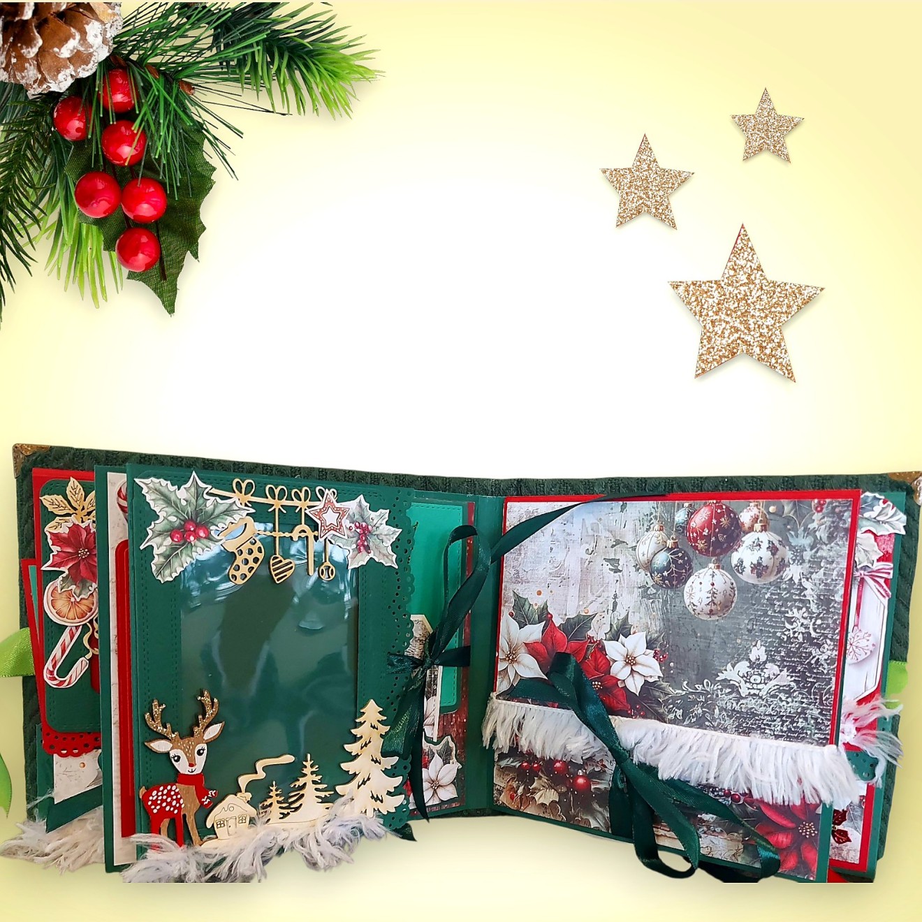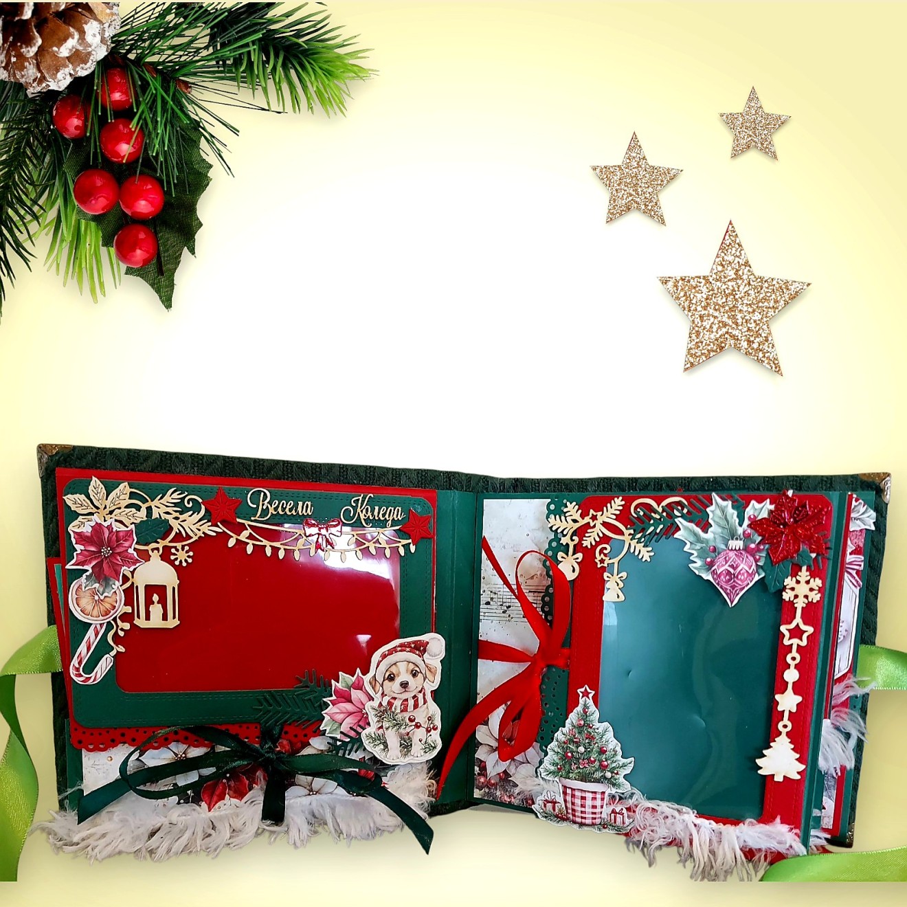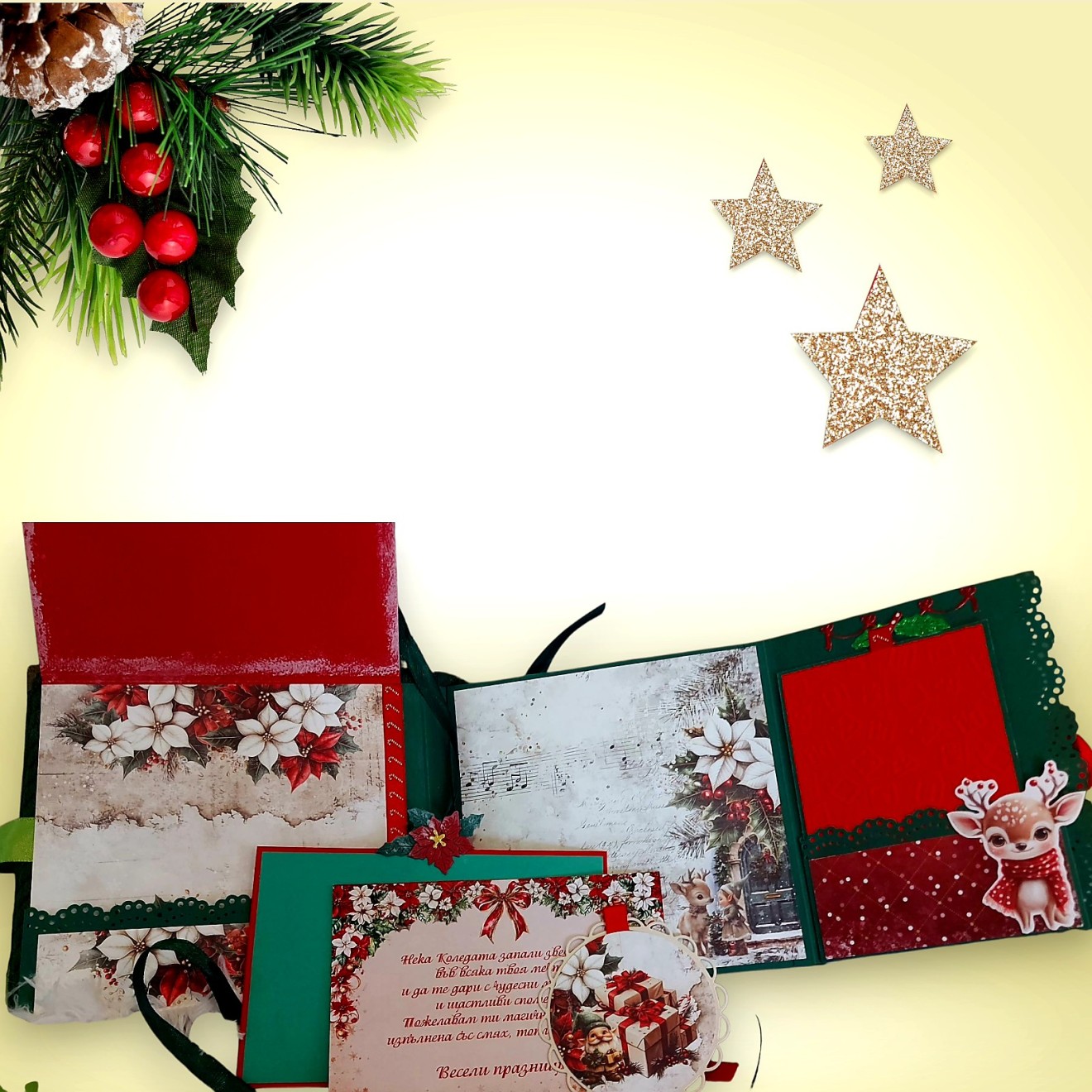 Ръчно изработен коледен албум – магия, събрана в снимки Потопете се в духа на празника с този уникален ръчно изработен коледен албум, създаден с внимание към всеки детайл. Албумът е идеалното място да съхраните най-топлите спомени от зимните празници – семейни моменти, коледни традиции, снимки от украса, подаръци и усмивки. ✦ Изцяло ръчна изработка ✦ Подбрани висококачествени материали ✦ Твърди корици пакрити с плат ✦ Декоративни елементи – панделки, тагове, джобчета, акценти ✦ Място за снимки, бележки и пожелания Той не е просто място за снимки – това е малко съкровище, което събира топлината на празниците. Подходящ е както за личен спомен, така и за специален подарък за близък човек. Всеки албум е уникат и носи своя собствена история – изработен с любов, внимание и празнично настроение.