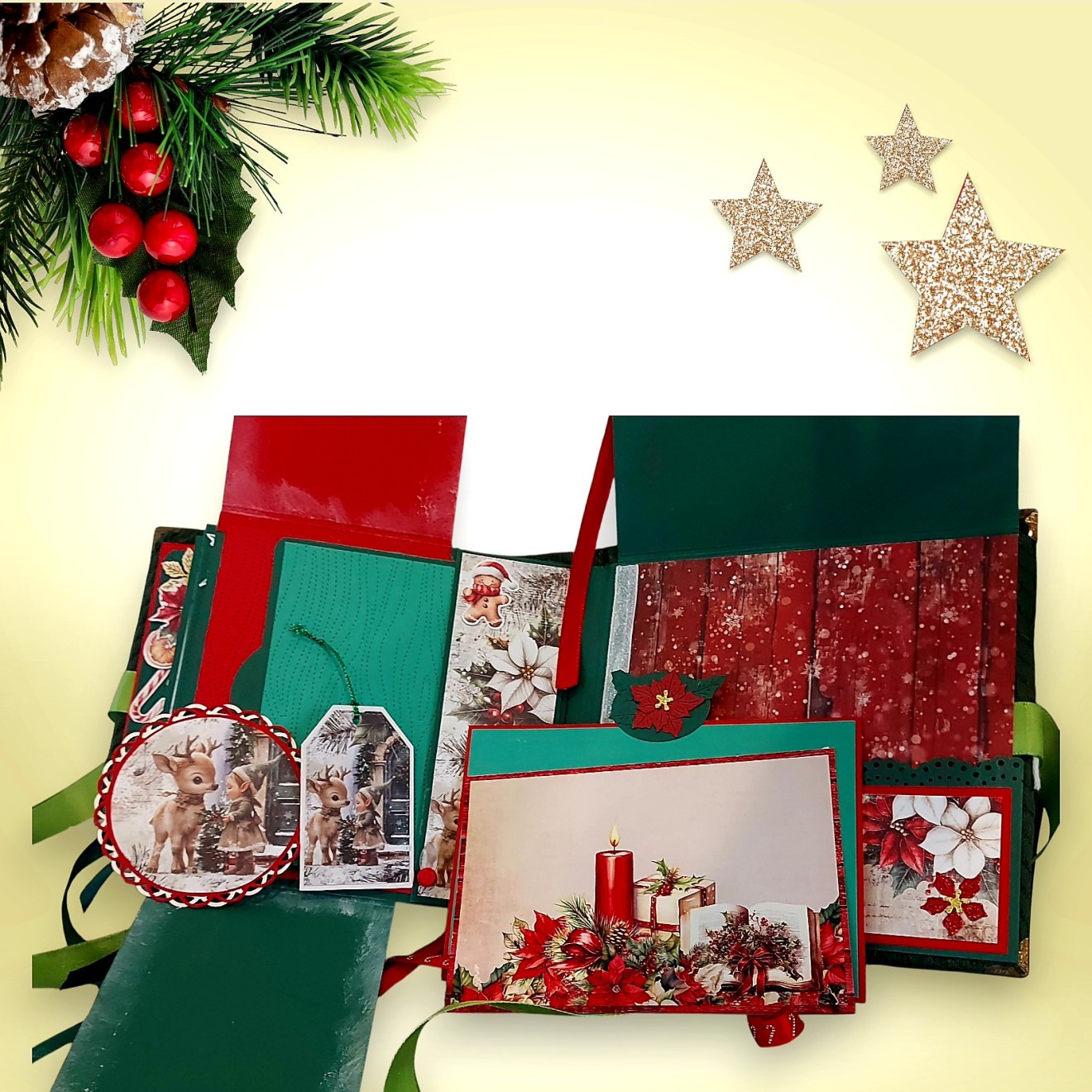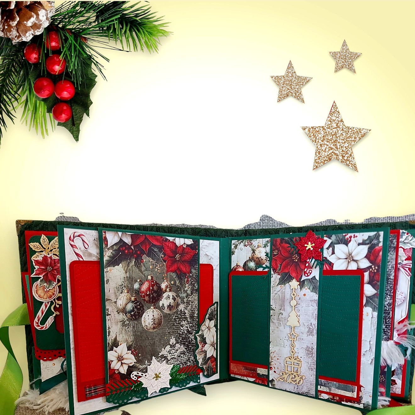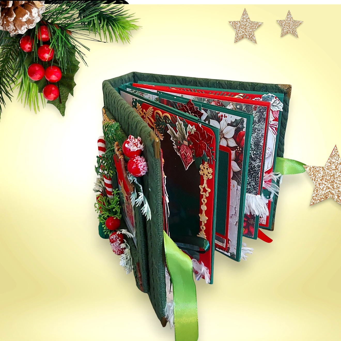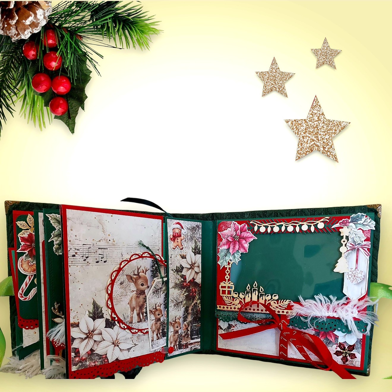 Ръчно изработен коледен албум – магия, събрана в снимки Потопете се в духа на празника с този уникален ръчно изработен коледен албум, създаден с внимание към всеки детайл. Албумът е идеалното място да съхраните най-топлите спомени от зимните празници – семейни моменти, коледни традиции, снимки от украса, подаръци и усмивки. ✦ Изцяло ръчна изработка ✦ Подбрани висококачествени материали ✦ Твърди корици пакрити с плат ✦ Декоративни елементи – панделки, тагове, джобчета, акценти ✦ Място за снимки, бележки и пожелания Той не е просто място за снимки – това е малко съкровище, което събира топлината на празниците. Подходящ е както за личен спомен, така и за специален подарък за близък човек. Всеки албум е уникат и носи своя собствена история – изработен с любов, внимание и празнично настроение.
