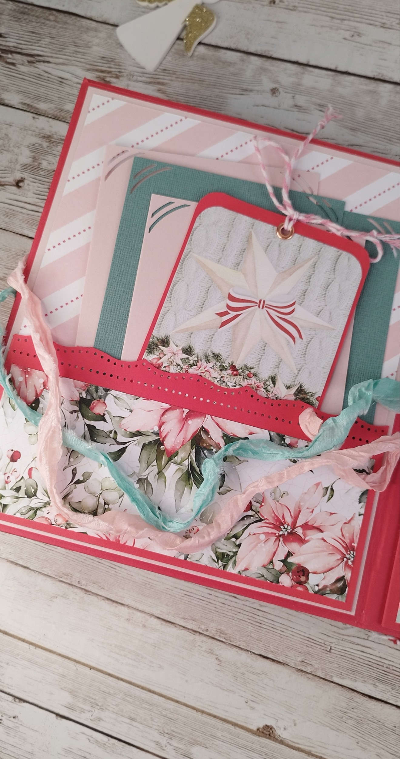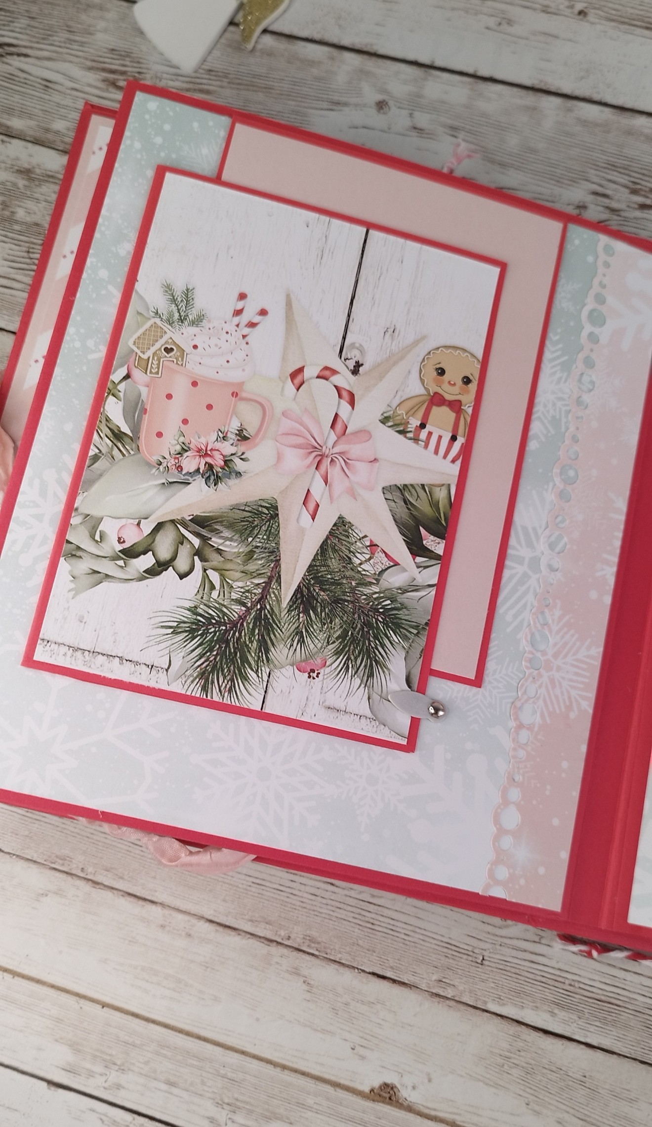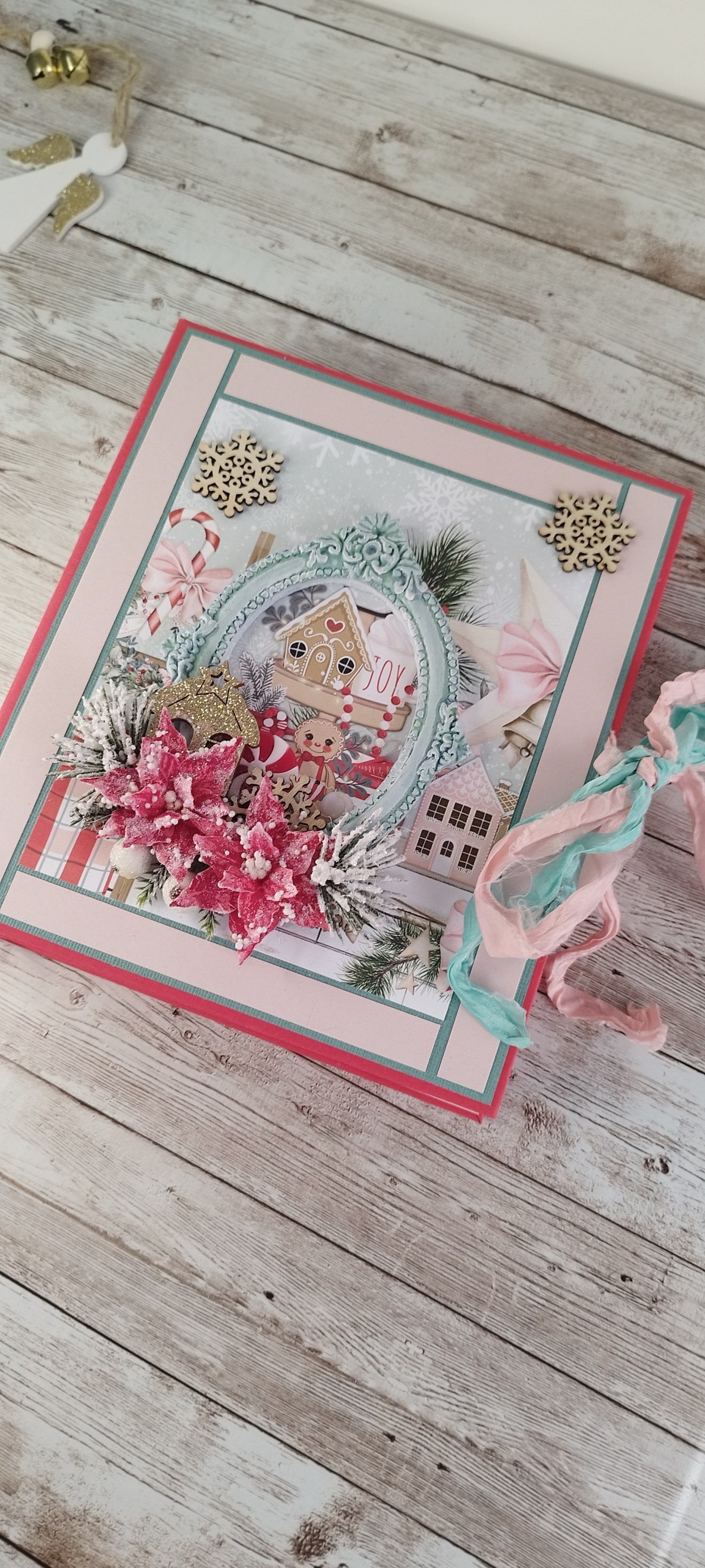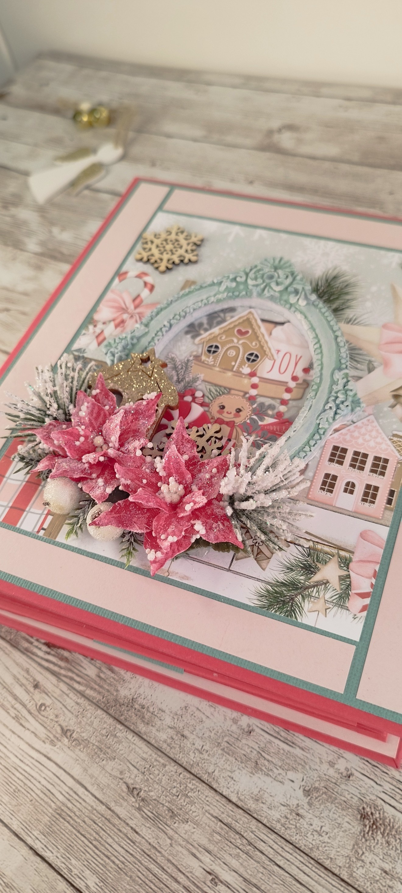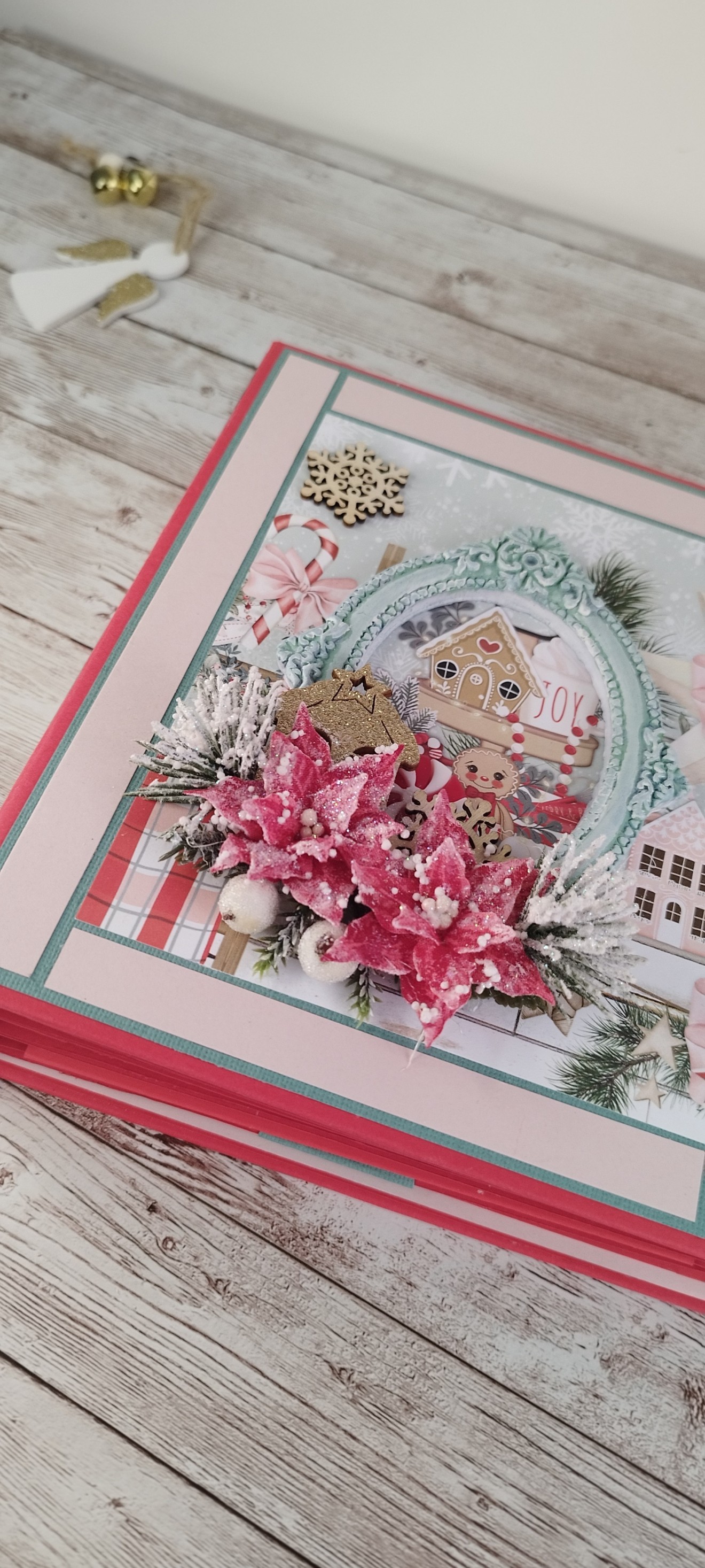 Коледен скрапбук албум за 50 броя снимки 9х13см. Прекрасен вариант да се запазят любими снимки с любими хора от топлия празник Коледа.Албума носи много настроение и красота, но запълнен със снимки ще е изцяло завършен скъп спомен и подарък.