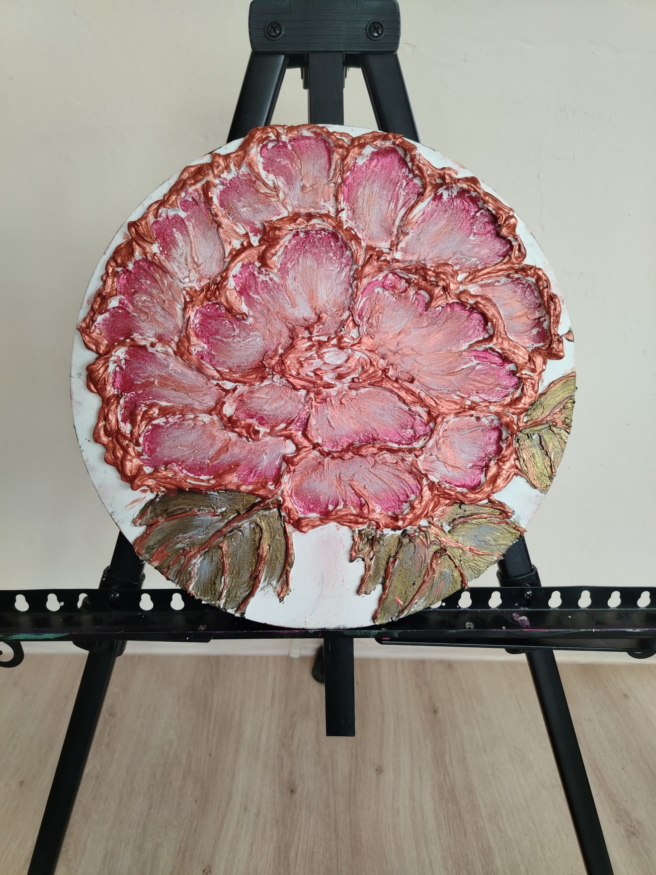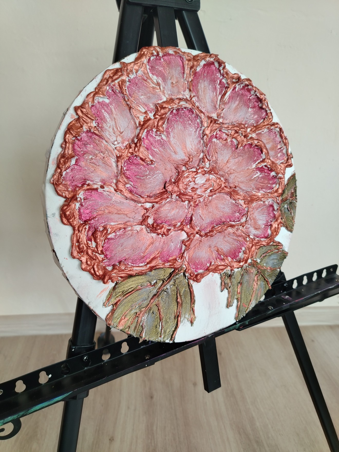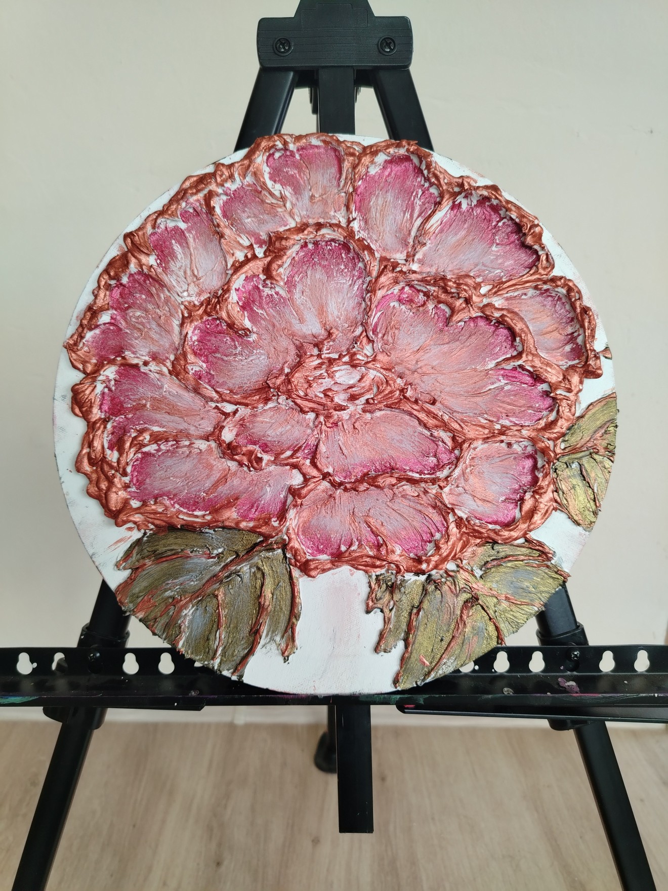 #Art #Handmade #Artpainting #acril 3D #Картина #Релефна #картина на #цвете с #текстурна #паста и #акрил- #металик върху #кръгло #платно с диаметър 30 см.