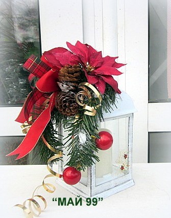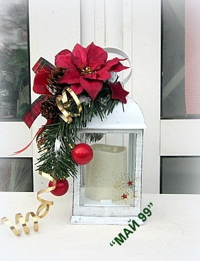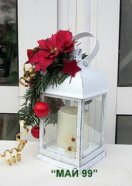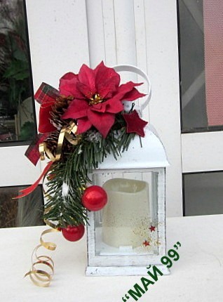 Коледен бял,светещ фенер с коледна украса и червена коледна звезда 25/10/10. Чудесен коледен подарък!