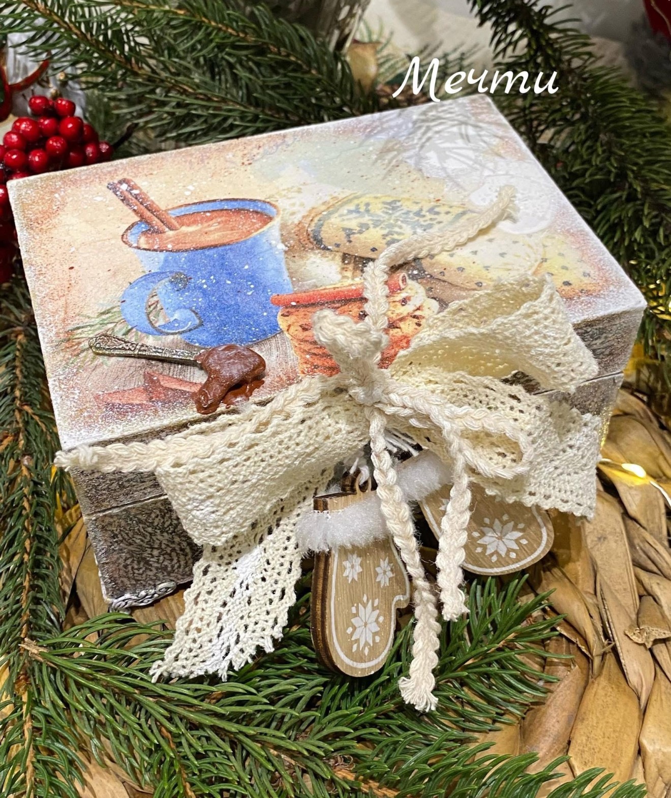 Дървена кутийка, декорирана с декупаж… Размери; 14,5см./10см./6,5см.🎄🎅🏼🦌🛷❄️ #коледенподарък #коледа #декорация #коледнаукраса #handmade #ръчнаизработка #мече #коледнакутия #топълшоколад