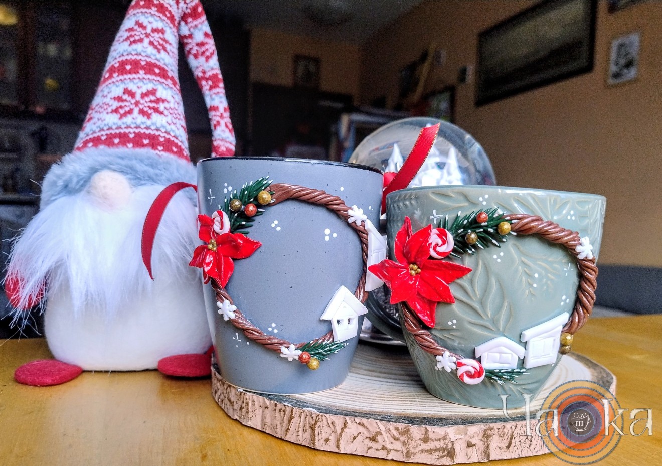 Искате ли неповторим подарък за Коледа за вашите близки? Тази чаша, декорирана ръчно с полимерна глина с елхов венец няма аналог и не може да се повтори, ще зарадва всеки ценител на ръчно изработеното. То носи смисъл и много послание.