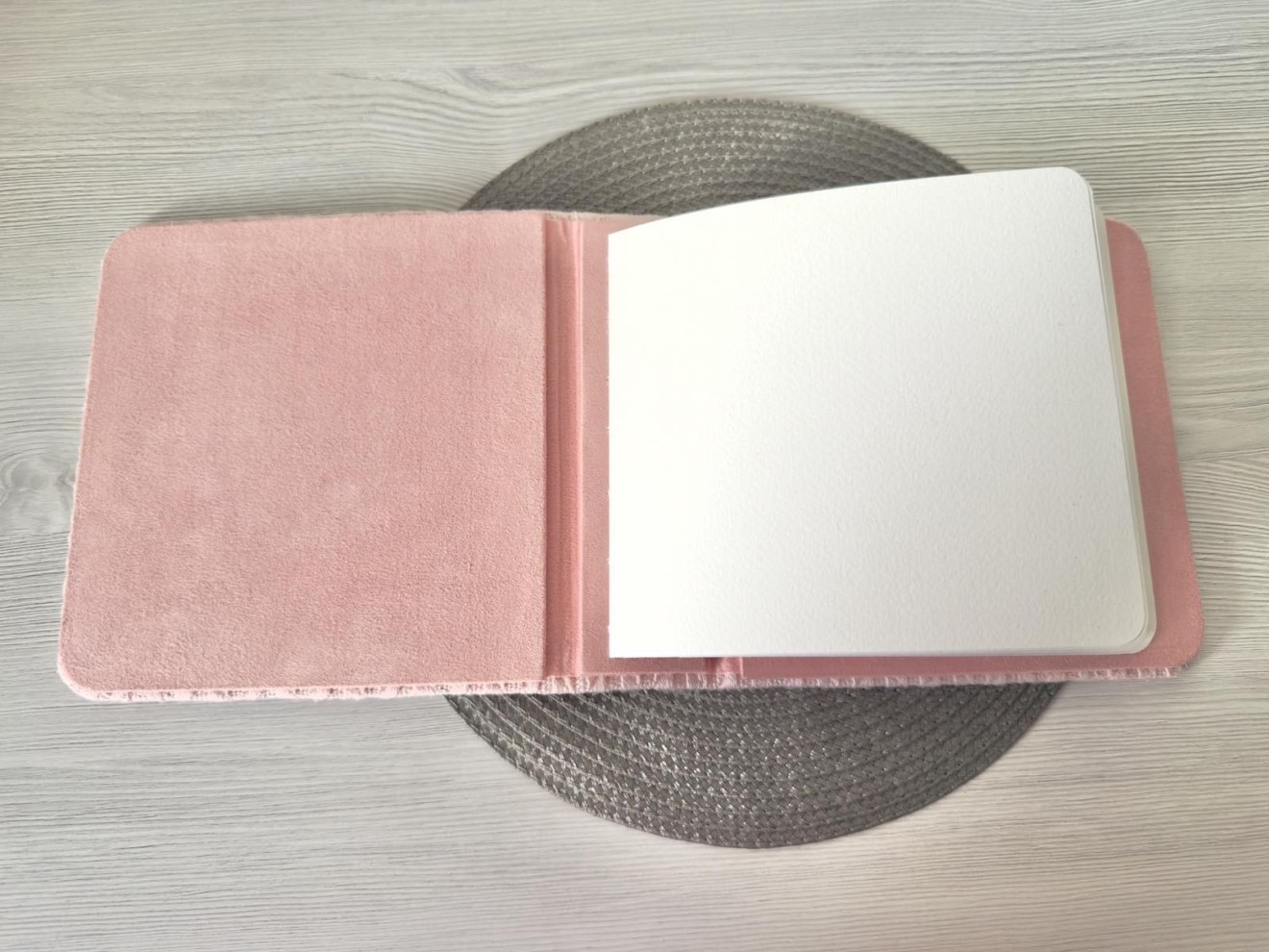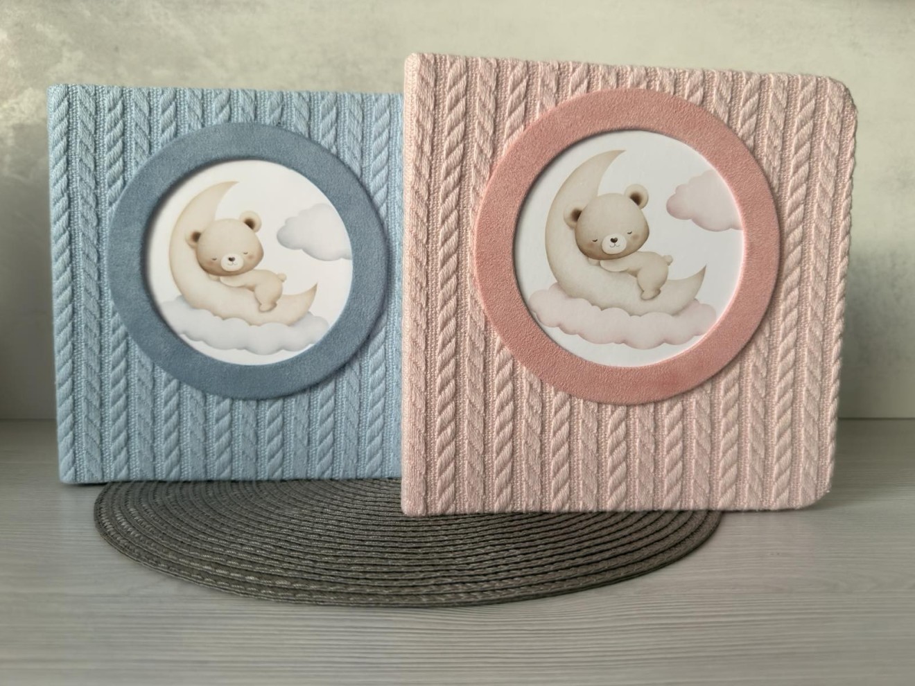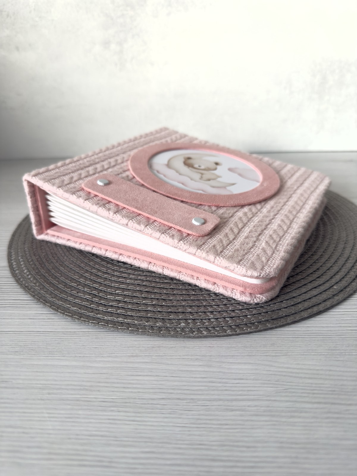 📸48 снимки – размер 10×15 см 🧶 Корица с плат плетка – мека и нежна 🪡 Шит за здравина и дълготрайност 🏷️ Персонализация – табелка с името на детето Може да се свържете с мен и на моята страничка във фейсбук Работилничка от мечтите https://www.facebook.com/RabotilnichkaOtMechtite