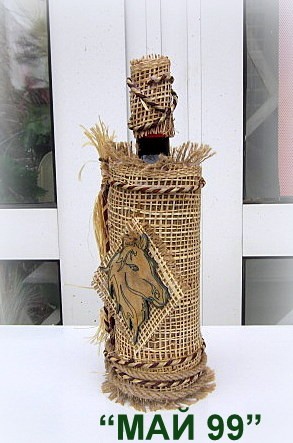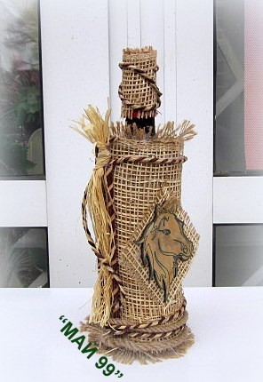 Ефектен мъжки подарък , обвит в слама,зебло е пресукана връв,дървена глава на кон и натурални материали!