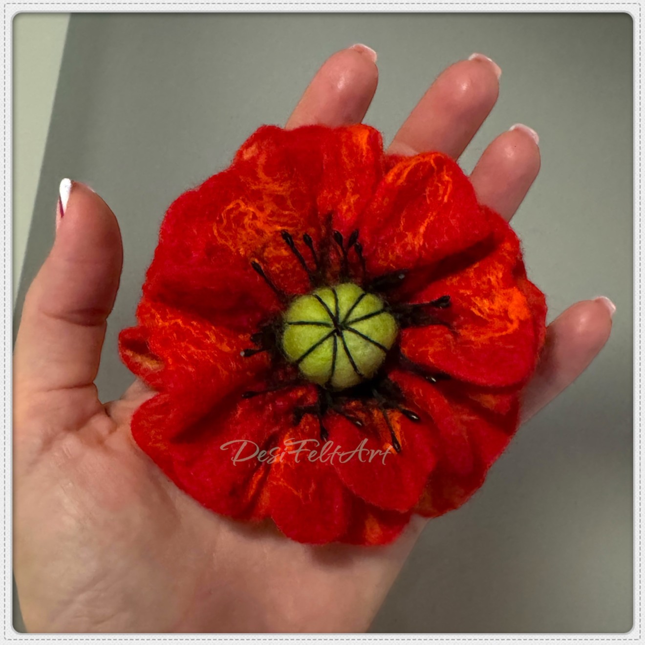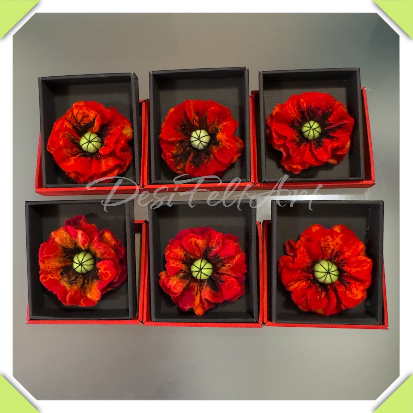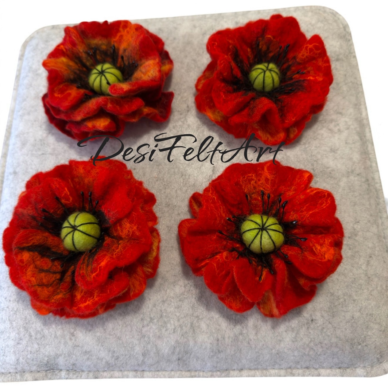 Ръчно изработени макове от мериносово вълна с техника мокро плъстене. Всеки един от тях е с различен размер, приблизително около 9см (диаметър). Тези макове носят силата на цвета, символиката на живота и онова усещане за топлина, което само вълната може да даде, те са идеалният акцент, който няма как да остане незабелязан 😉 Красиво опаковани и готови за подаряване Цената е за 1 брой