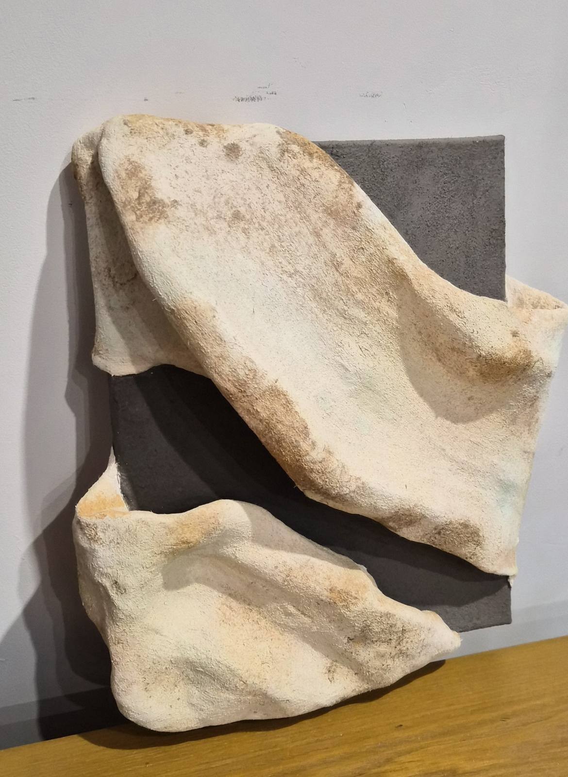 Размер 35 см. на 25 см. Изработено от дърво и текстил. Използвани са акрилни грунд, боя, патини и лак, всичките на водна основа.