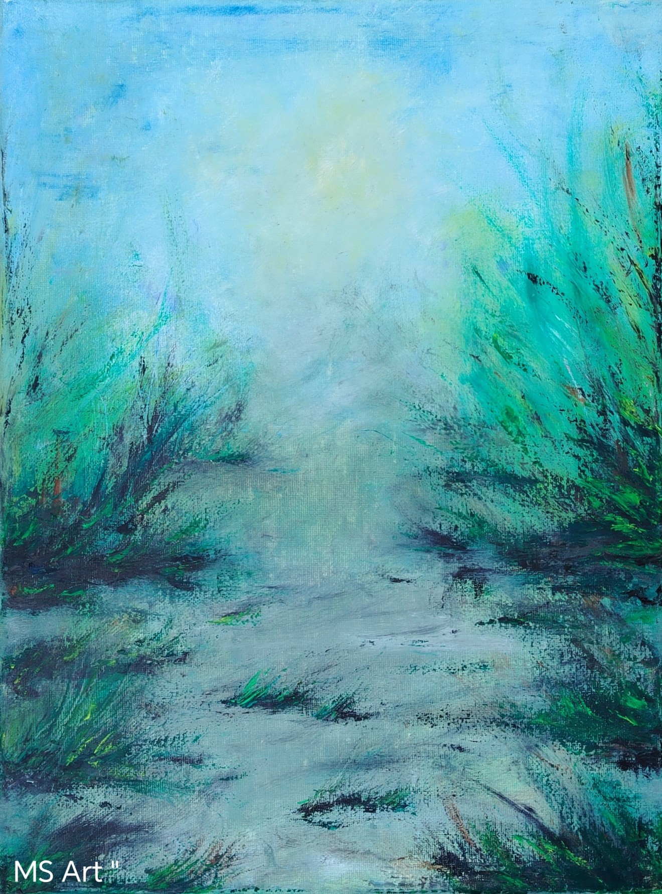 Зелена пътека " #Абстрактна #картина, рисувана с #маслени #бои върху #платно с подрамка с размери 40 /50 см.