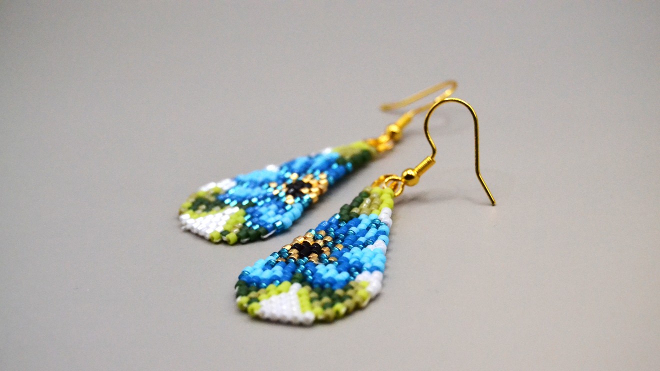 Елегантни, нежни ,висящи обеци. Изработени са от японски стъклени мъниста .