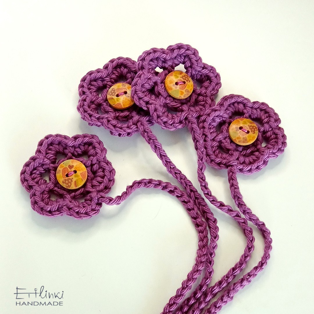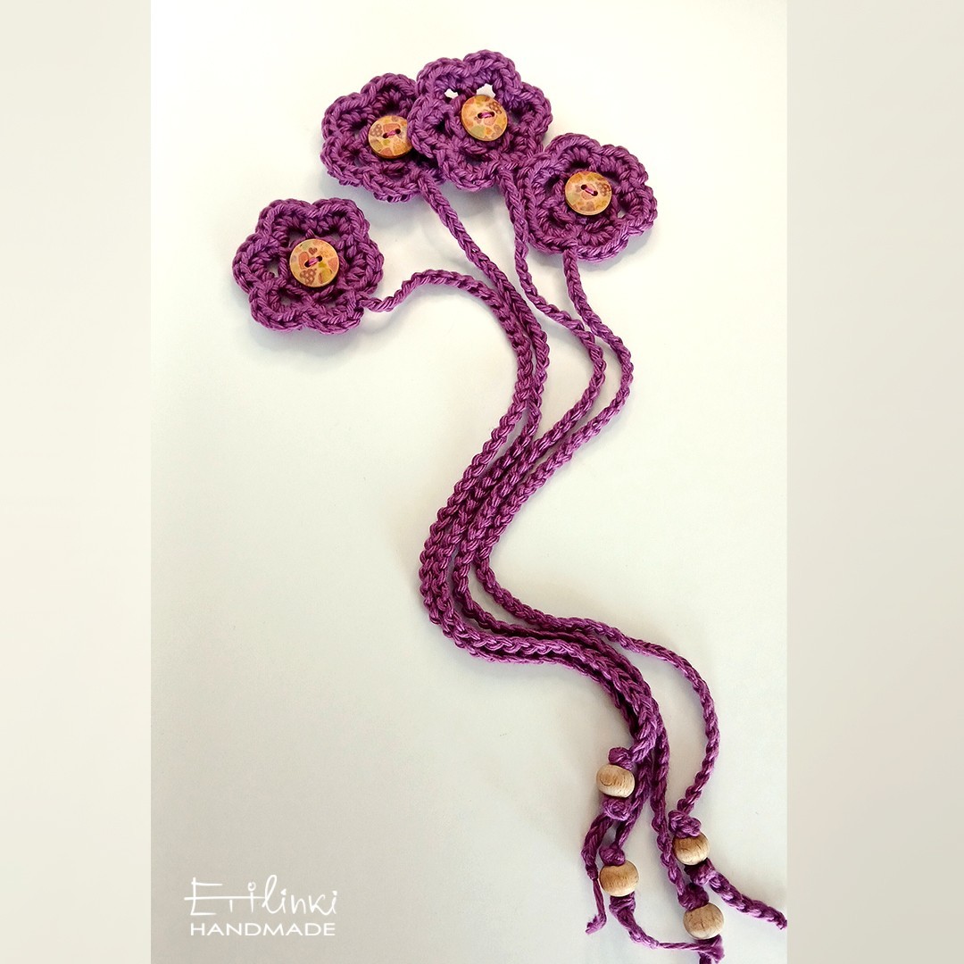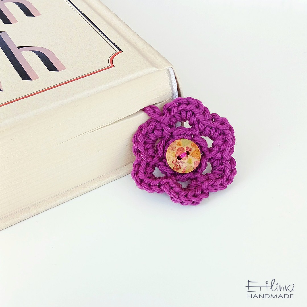 Книгоразделител, изплетен на една кука от памучна прежда. Наличен е и в други цветове.