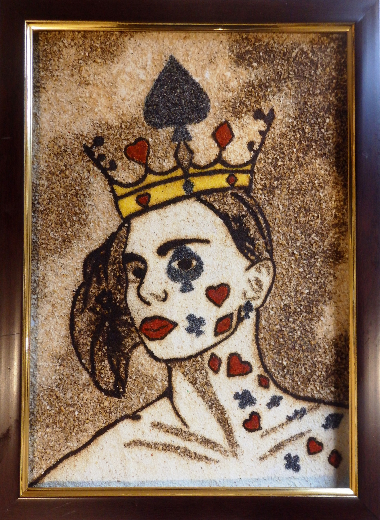 Картината е изработена изцяло от кафе и подправки - червен пипер, овесени трици, пшенично и царевично нишесте, маково семe