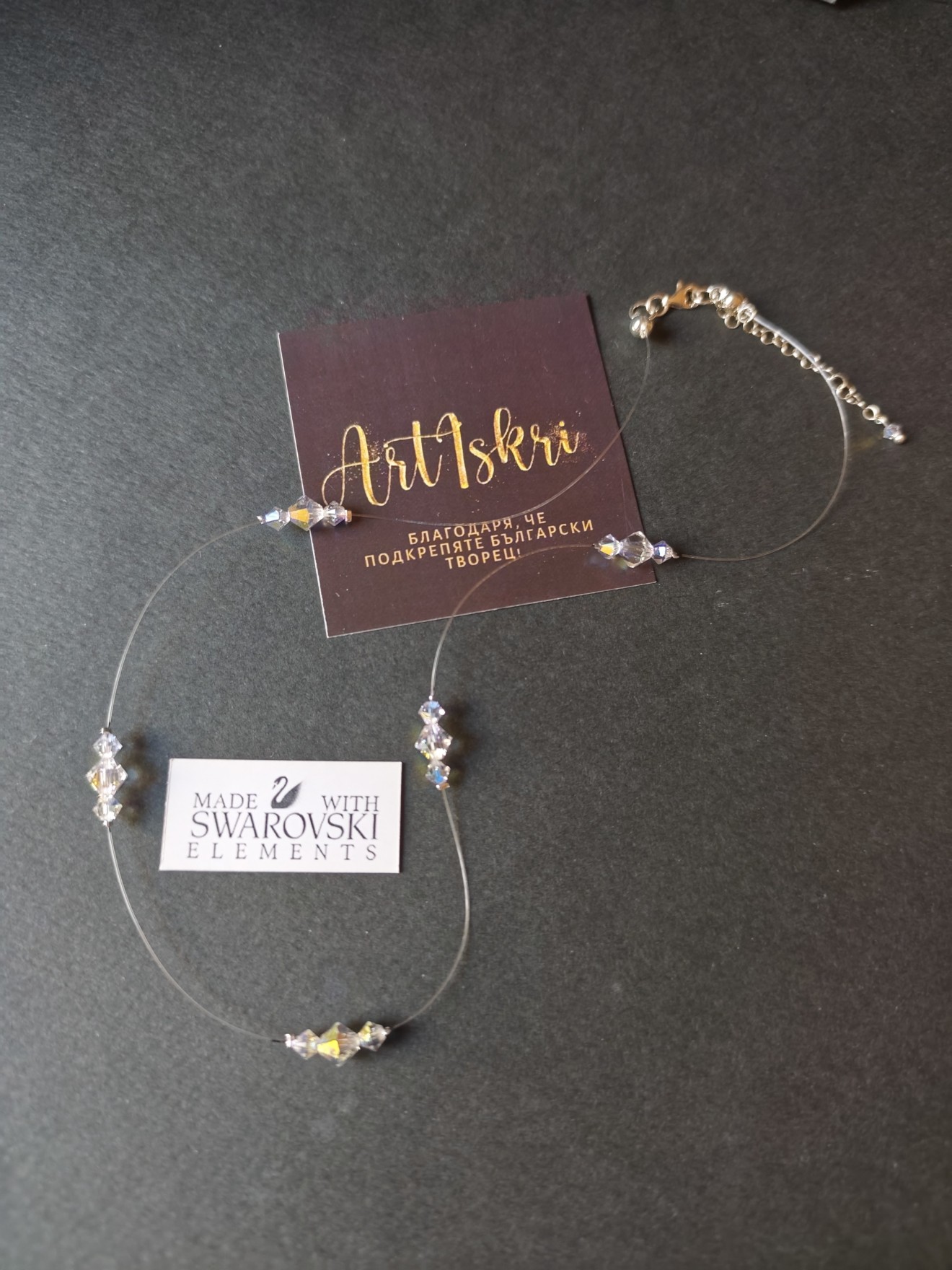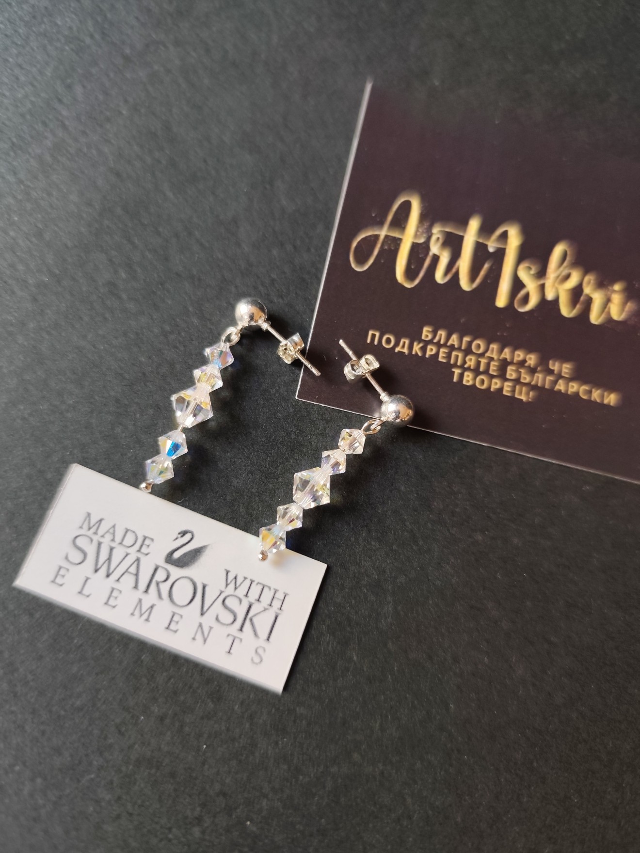 💎 Нежност и деликатен блясък ! 💎 💎 Кристали Сваровски , сребърни закопчалки и удължители, и сребърни пинчета за обеците . 💎 Изработва се по поръчка и с дължини, които Вие предпочитате.