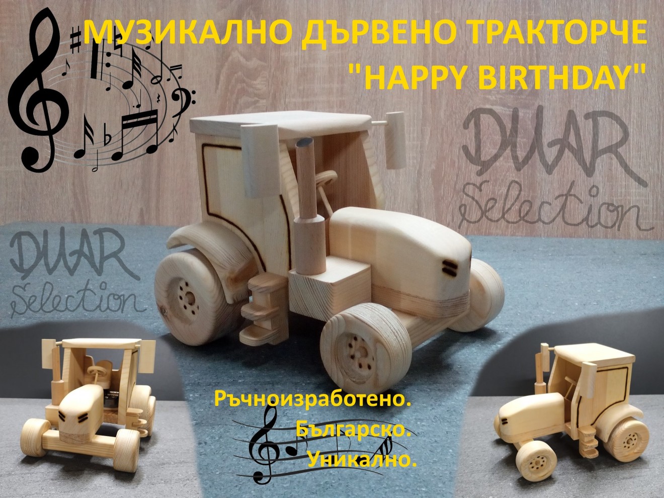 Приблизителни размери на тракторчето: Дължина: 20 см Ширина: 15.5 см Височина: 14.5 см Вграден музикален навиващ се механизъм за възпроизвеждане на мелодията "Happy Birthday" (Честит Рожден Ден) Колелетата се въртят