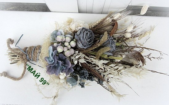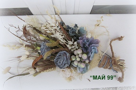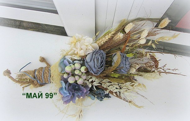 Букет сухи цветя,изсушени рози,треви и натурални материали,зебло,слама и въже с дължина 40-45 см.