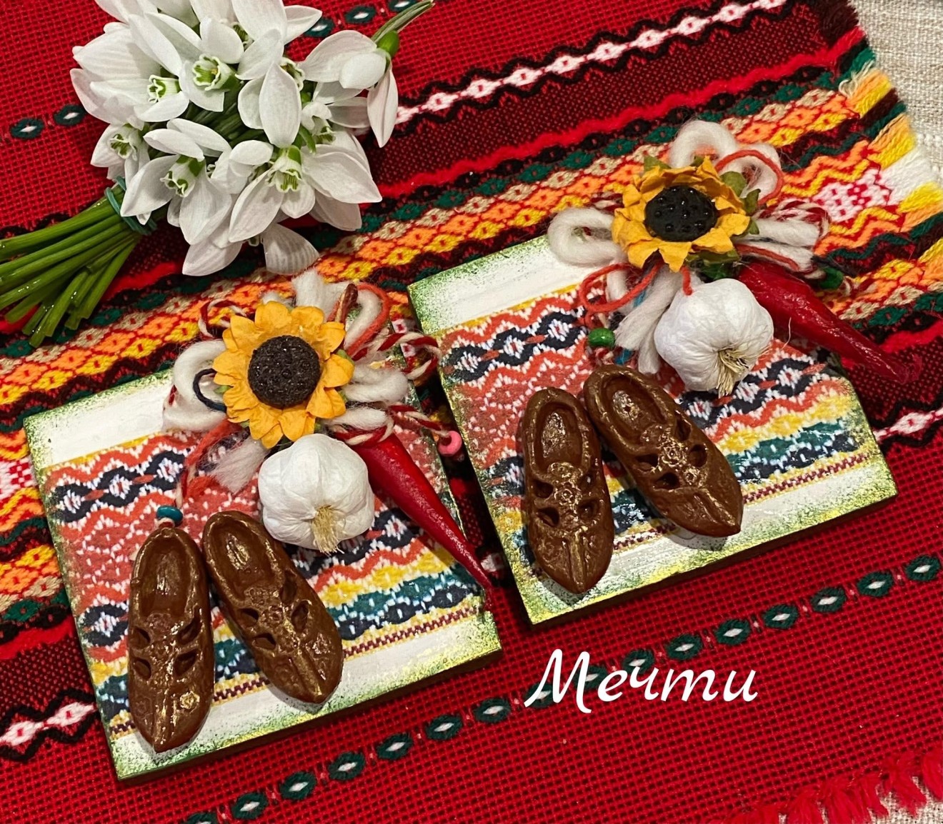 Първомартенски мини пана, декорирани с декупаж, гипсови цървулки, чесънче, чушка, вълнена прежда.🌻🌶️🧄🍀🌻🌻 Размери-9см./9см. За много усмивки и пролетно настроение. Цена-8€/15,65лв. 5 броя в наличност без повторение #народнимотиви #мартеници #декорация #бабамарта #мартенички #handmade #ръчнаизработка #шевици #пана