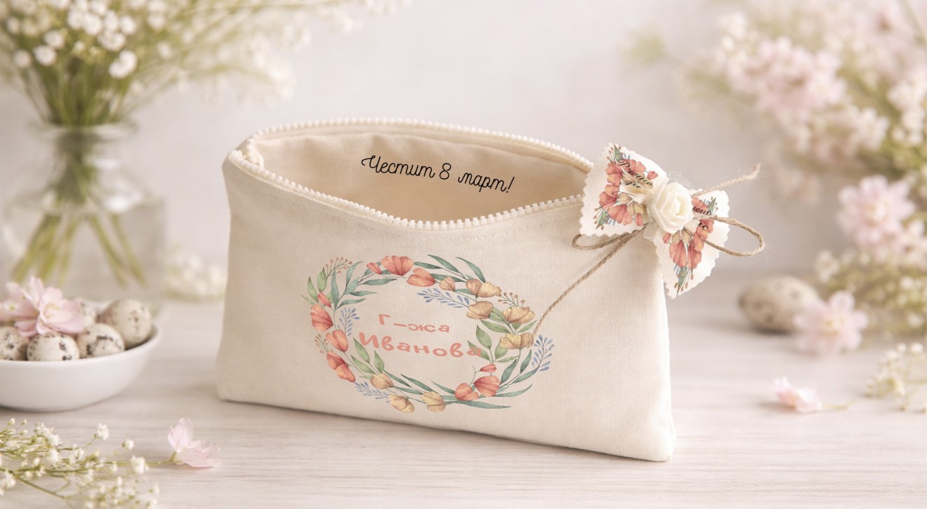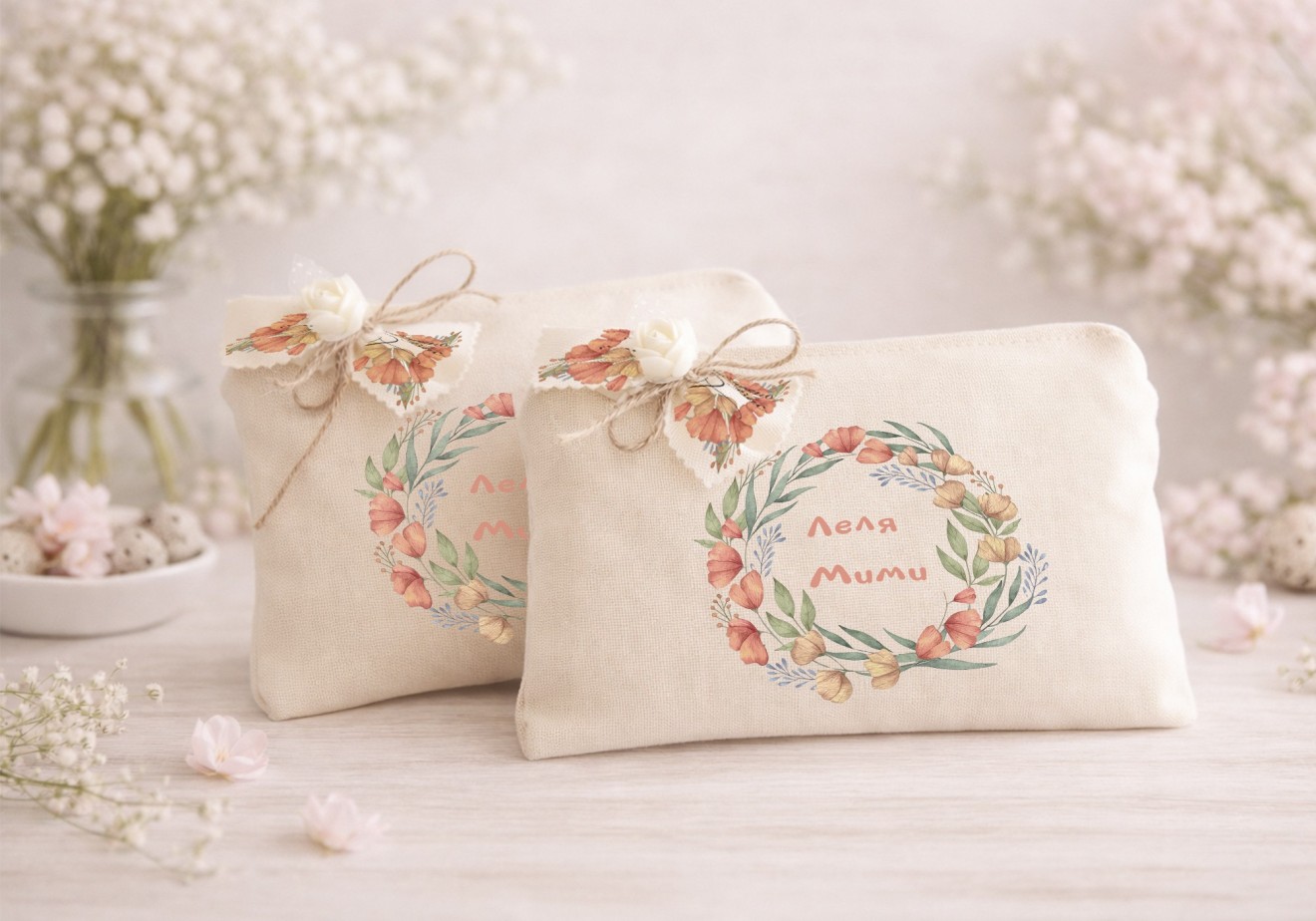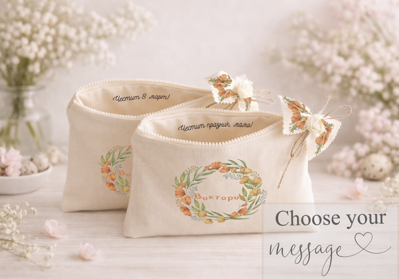 Ръчно изработени и персонализирани козметични чанти, създадени с внимание към всеки детайл. Перфектният подарък за вас, за любима приятелка, или госпожите на детето Ви – защото най-хубавите подаръци носят лично послание и емоция. Добавете име отпред и, ако пожелаете, тайно вътрешно послание – думи, които да радват всеки път, когато несесерът се отвори Детайли: Висококачествен плат в нежен светло-бежов цвят Размер: около 22 × 14 см – идеален за ежедневни нужди или пътешествия Дигитален печат, който не избледнява и не се лющи Здрав и гъвкав цип за дълготрайна употреба За да създам вашия персонален несесер, изпратете ми: - Име за отпред - Вътрешно съобщение (по желание) Цена: - Без вътрешно съобщение – 11 EUR - 21,51 лв - С вътрешно съобщение – 13 EUR - 25,43 Ако имате въпроси или искате да направите поръчка, ще се радвам да ми пишете. Скоро очаквайте още нови дизайни 🙂 Поздрави, Марти 🌼