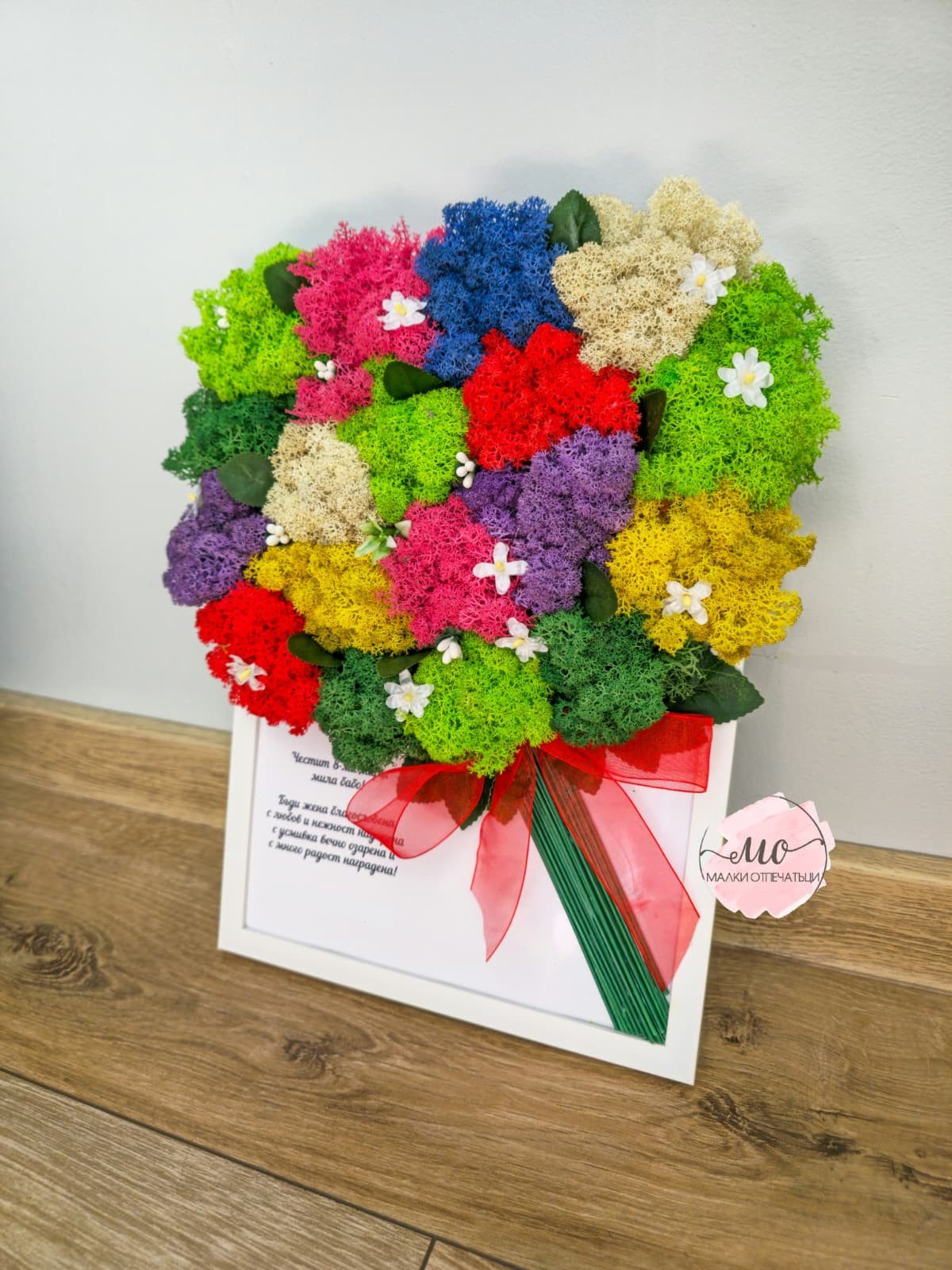 Подарък за 8 март – картина "Букет" с естествен скандинавски мъх o ръчна изработка o без поддръжка o персонализиране
