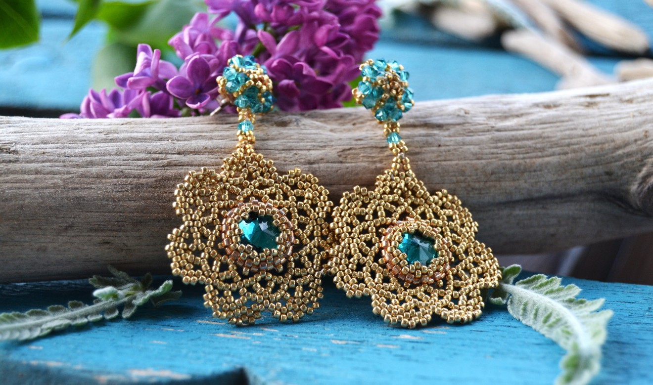 ✨ Потопи се в магията на Изтока ✨ Ръчно изработени обици от японски стъклени мъниста в златисто и сияещ син Сваровски кристал . Ориенталски дизайн, който носи стил, мистерия и блясък във всеки твой ден. 💎 Перфектни за специални моменти или като изискан подарък.