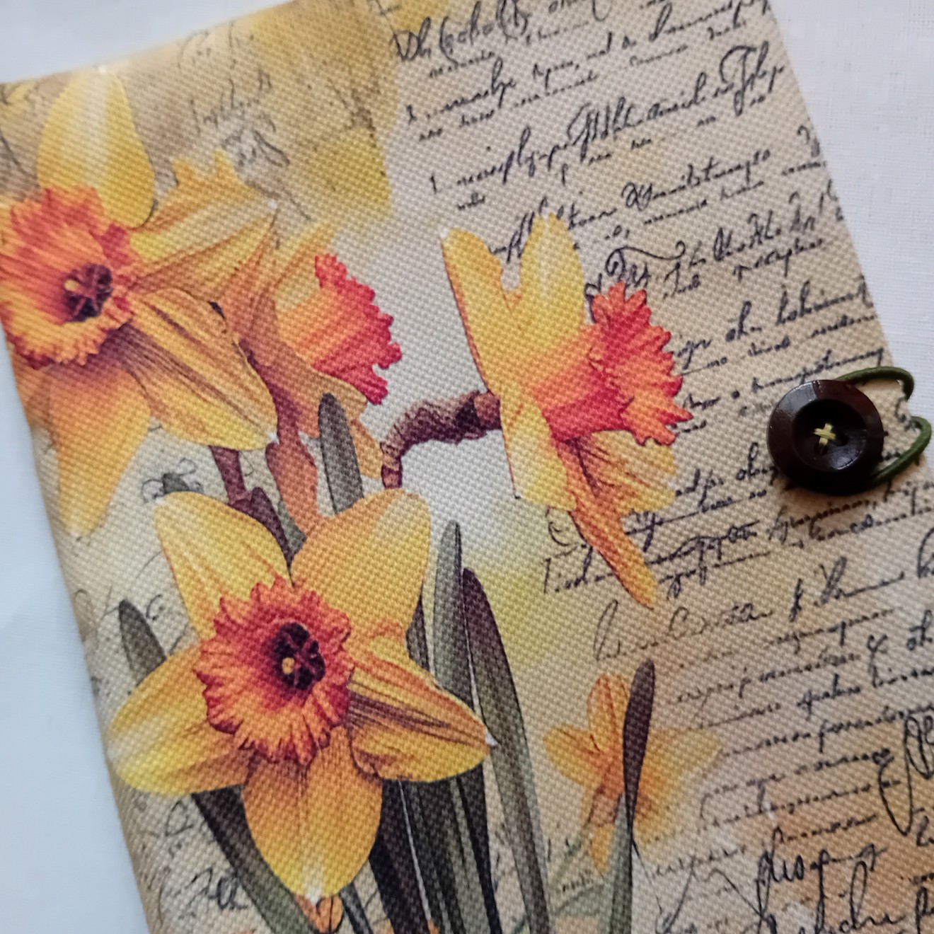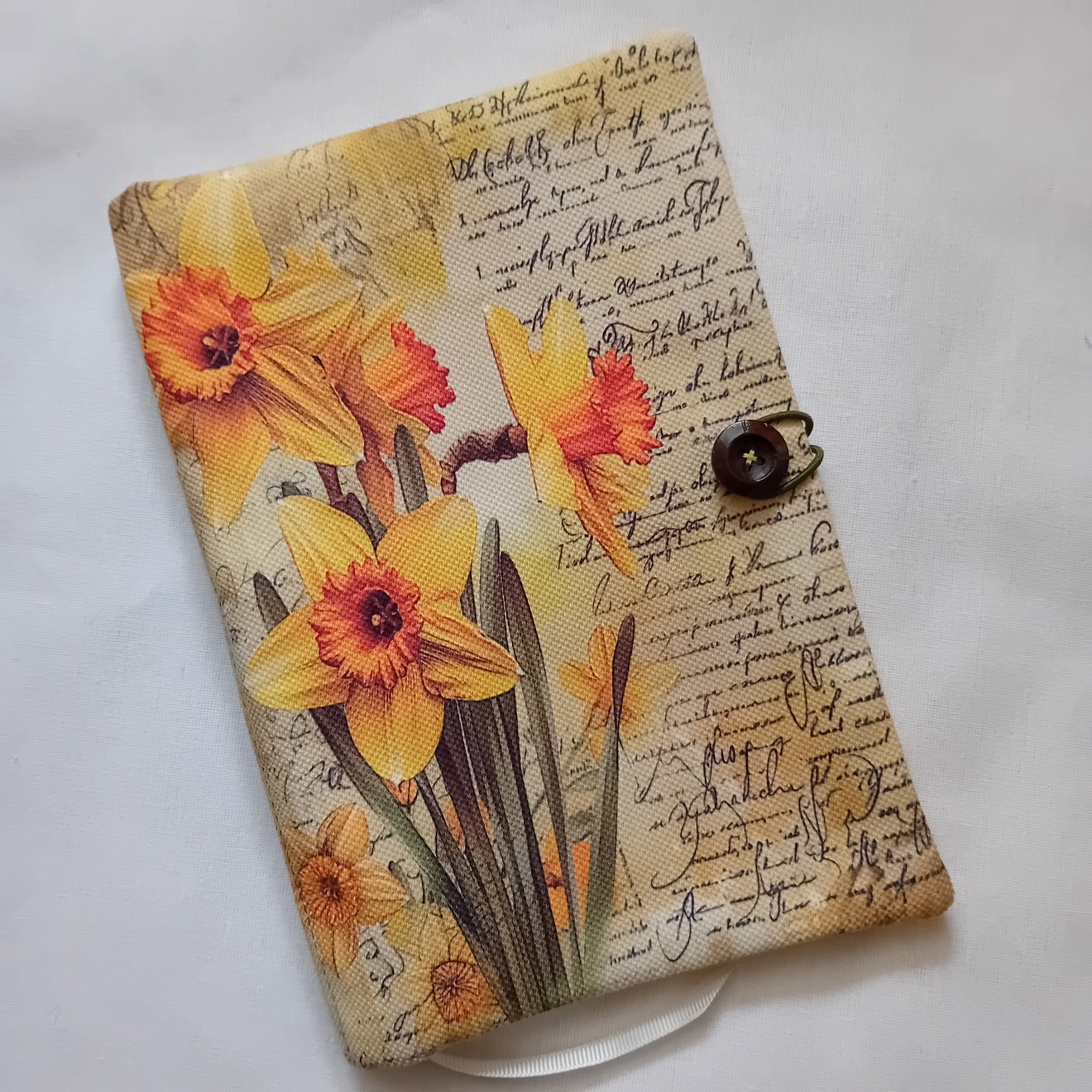Калъф за книга Размери около 23/16,5 см /в разгънато положение около 23/33 см/ Изработен от платове /памук и полиестер/, тънка вата, лента-книгоразделител, ластик и дървено копче