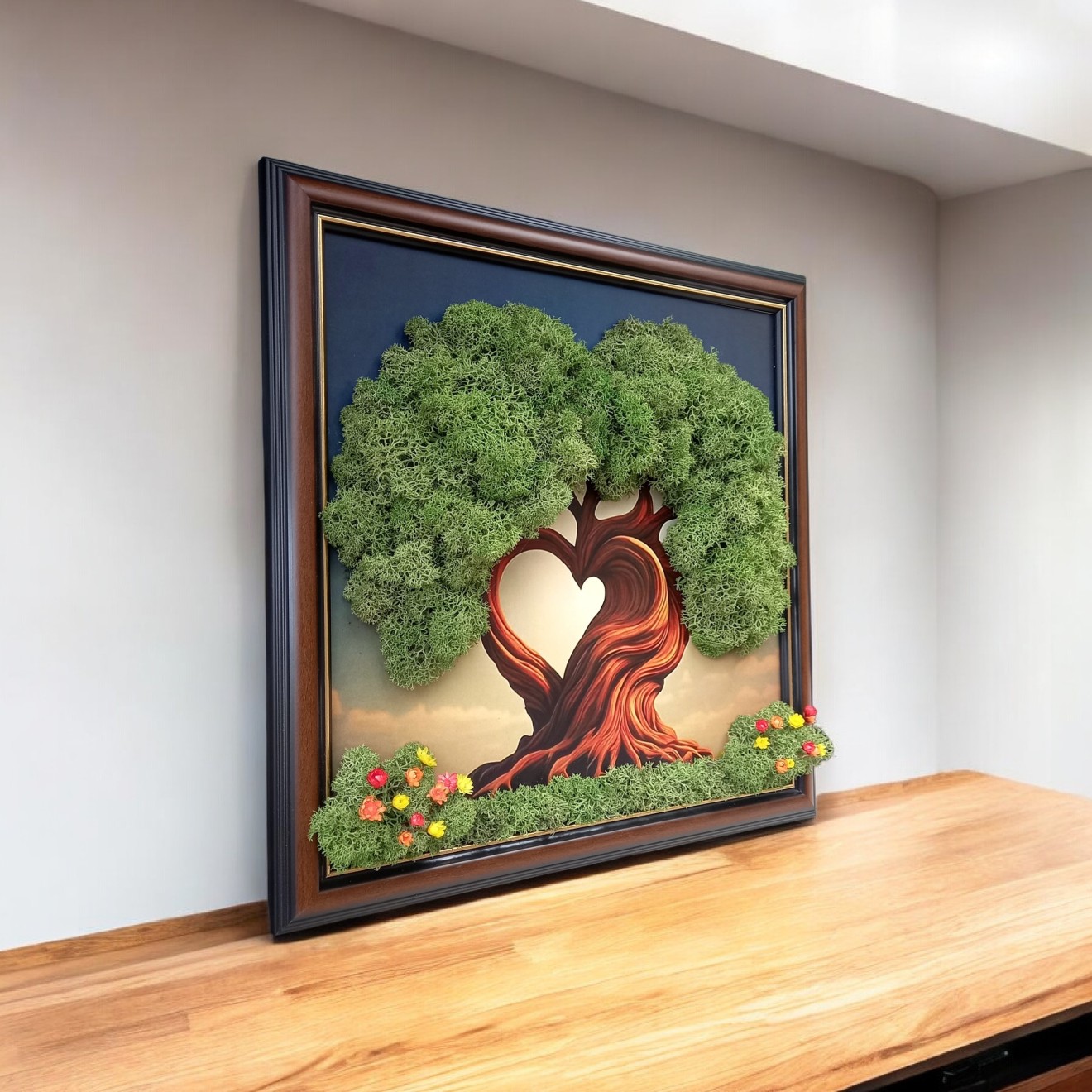 💚 „Корени на любовта“ 💚 🌳 Ръчно изработена картина със скандинавски мъх – символ на любов, близост и вечност. Подходящи за Свети Валентин, годишнина, сватба, годеж или просто специален жест от сърце 💞 💑 Може да бъде изработена със снимка на самата двойка, превръщайки картината в напълно личен и неповторим спомен 📸❤️ 🎨 Цветове по желание – съобразени с вкуса, интериора или повода 🌿 Използван е естествен стабилизиран скандинавски мъх и стабилизирани цветенца, които не изискват поддръжка и запазват красотата си дълго време 🎁 Перфектен подарък, който не увяхва, а остава като символ на чувствата ви