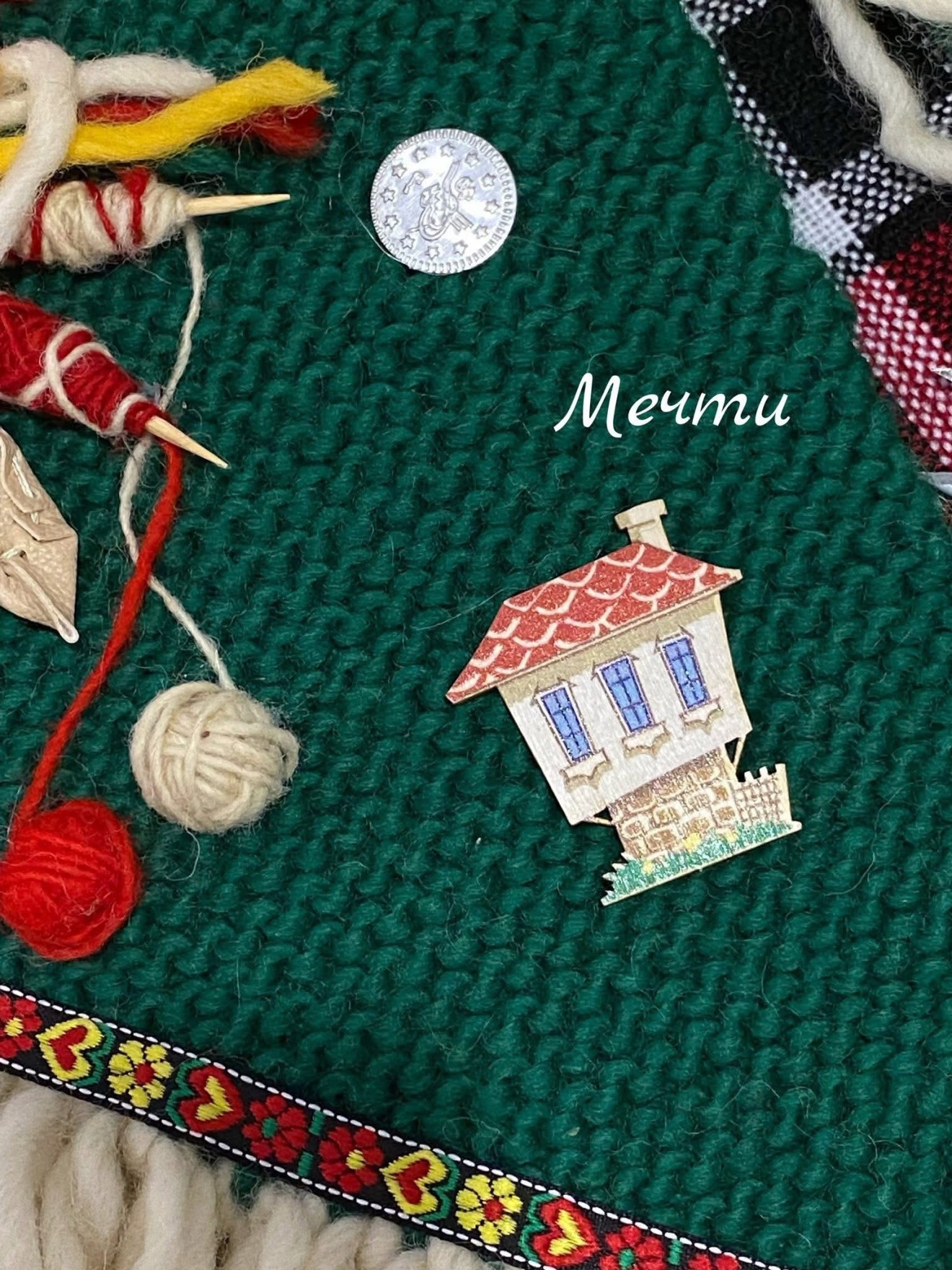 Ръчно изплетени от вълнена прежда, декорирани с цървулки, житни кълнове, вретенца, кълбенца, стомнички, детелинки... Приблизителни размери; дължина с ресничките-35см. ширина-18см. За здраве и берекет!