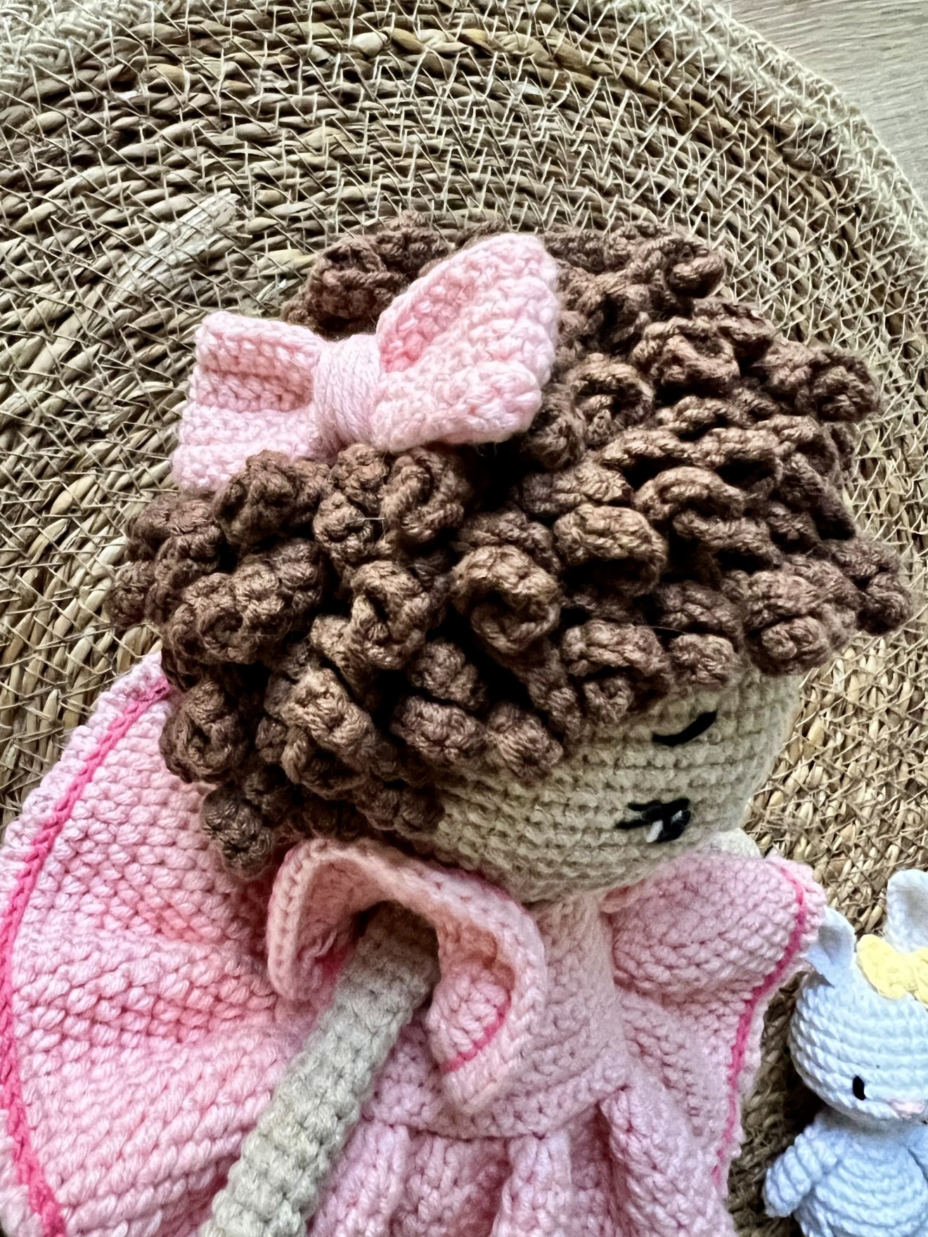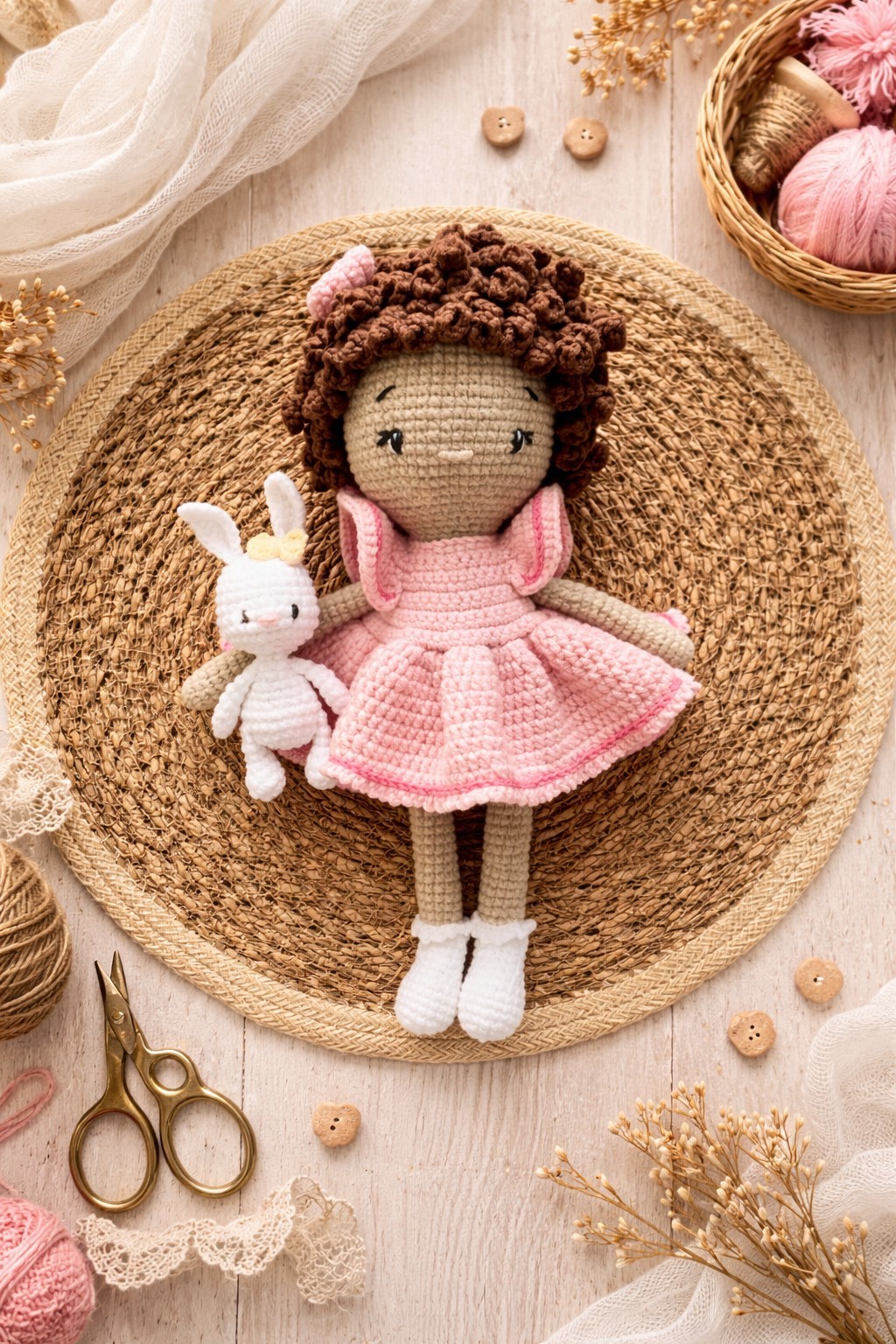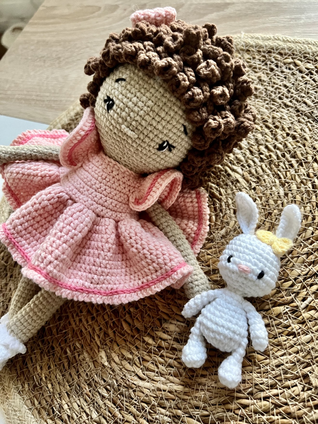 Височина около 25 см Кокетна кукличка с приятелче - зайче.