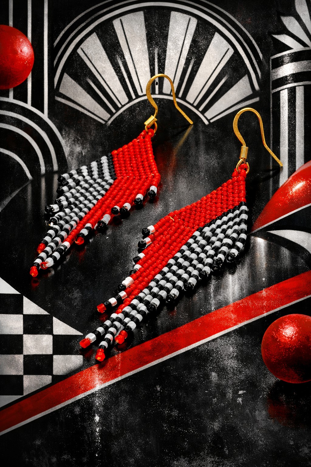 Висящи обеци, ръчна изработка. Японски стъклени мъниста в контраст черно, бяло и дръзко червено. Нова колекция, вдъхновена от арт деко стилът.🔥