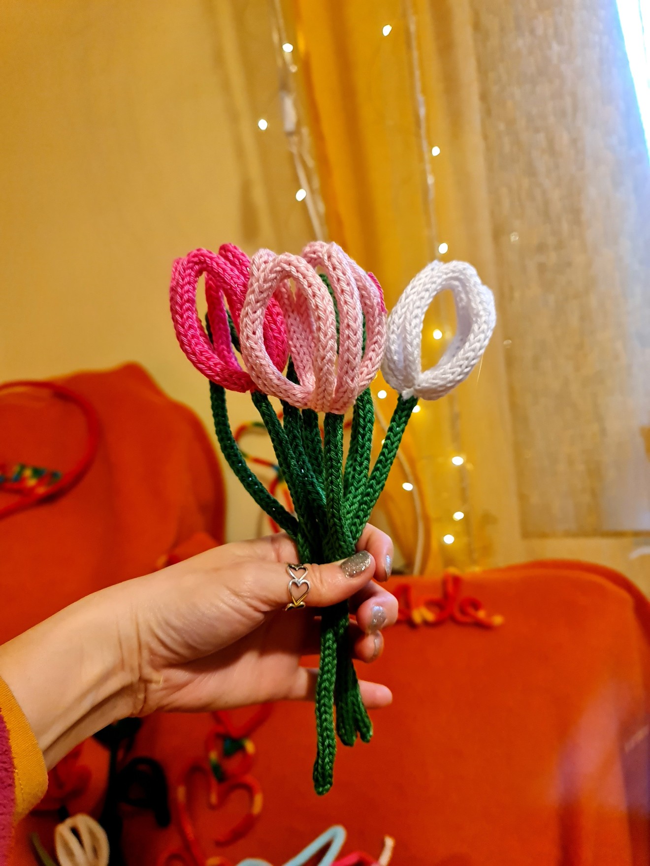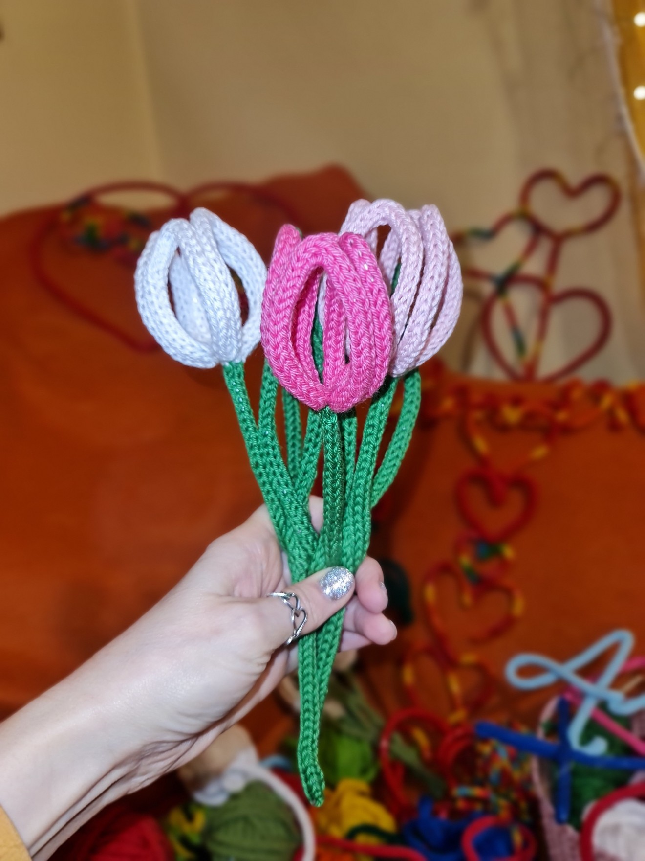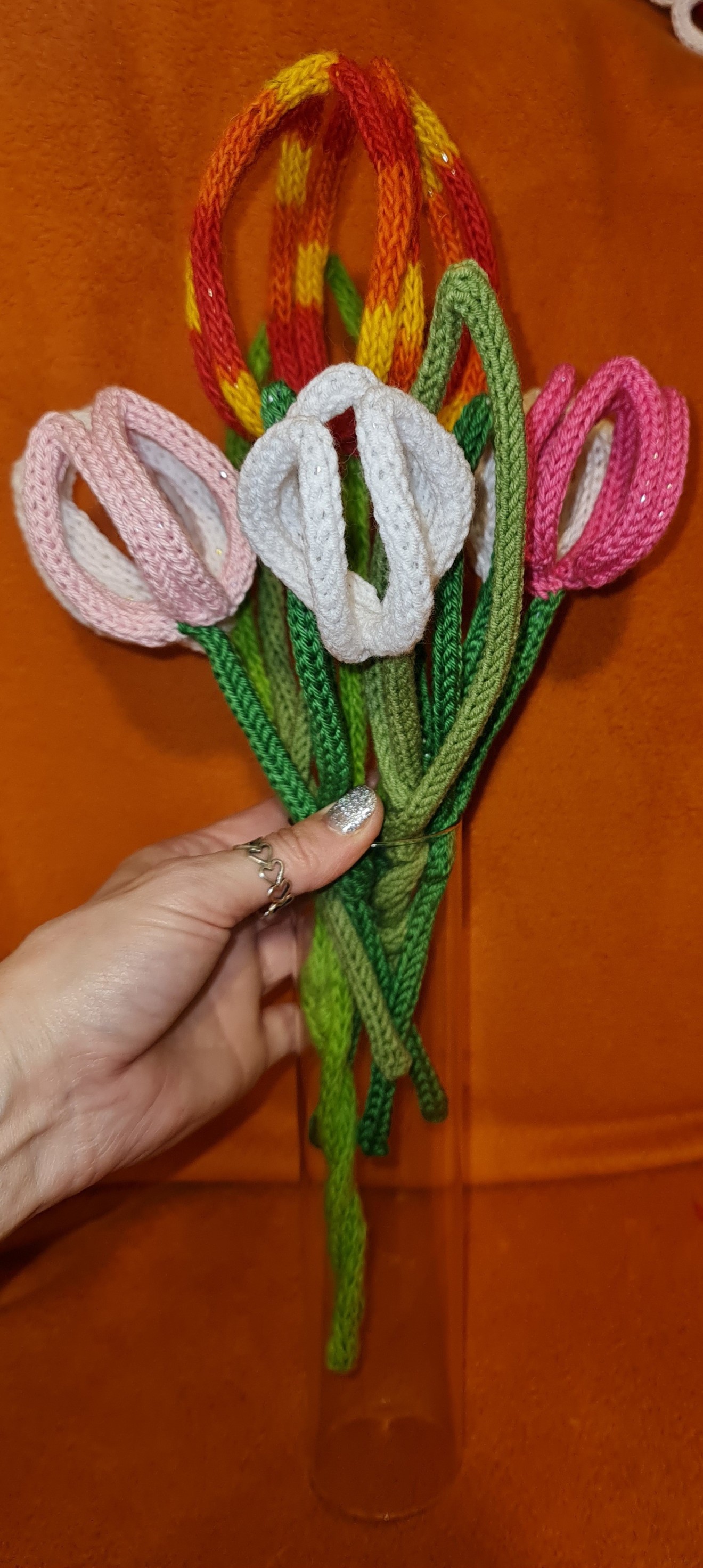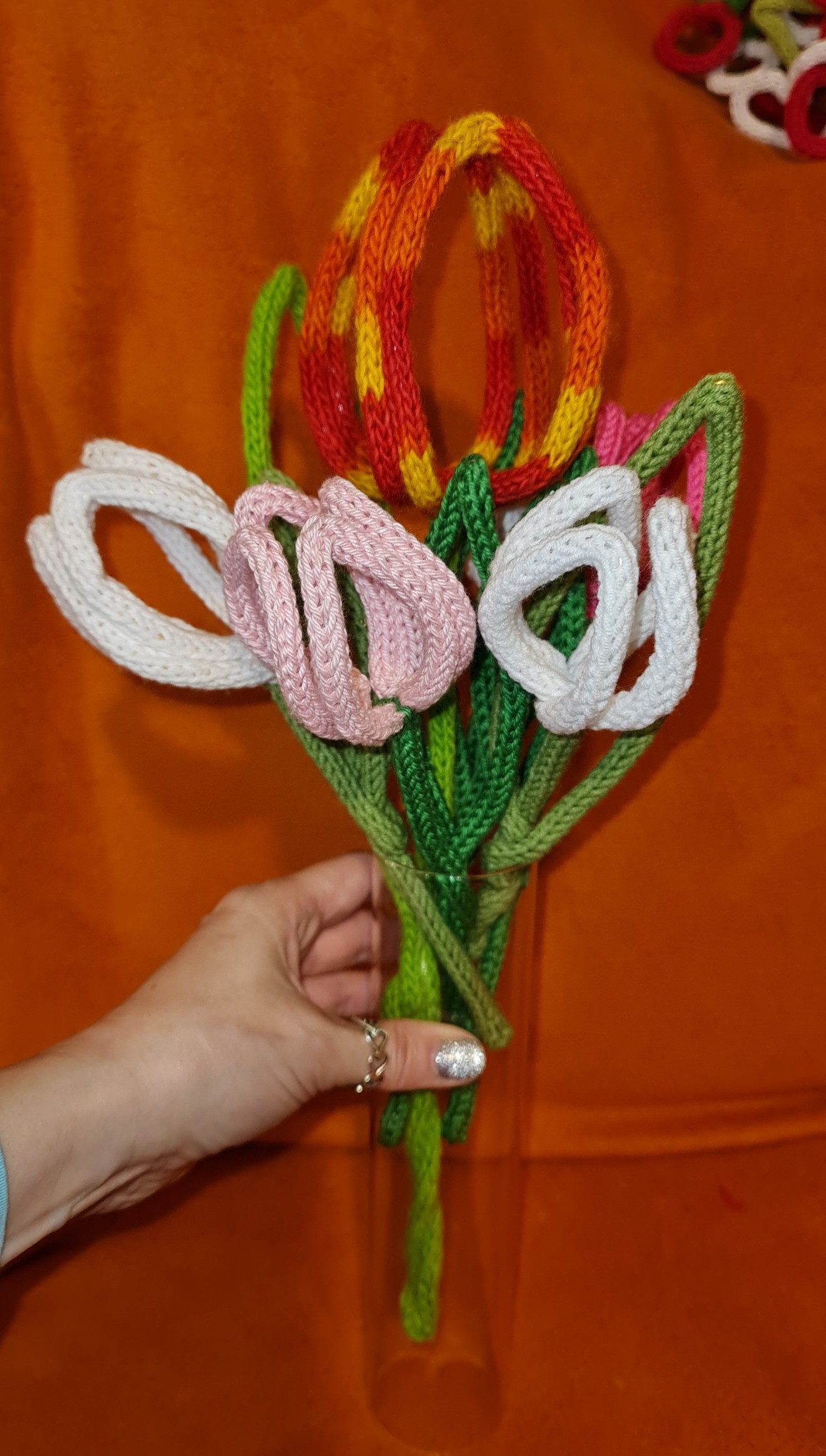 Лалета за декорация изработени от плетен шнур от памучна прежда с конструкция от тел,изработват се по поръчка според вашите предпочитания за цвят и размер