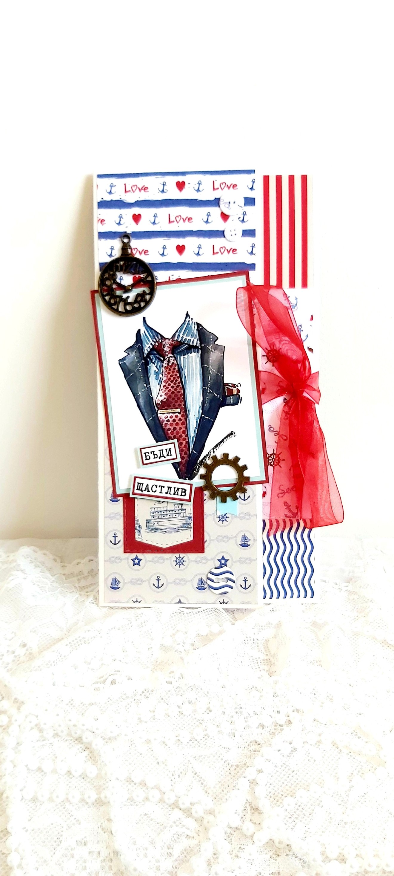 Искате да подарите пари на абитуриент по елегантен начин? Тази картичка-плик с размери 11/21 см е точно това, което търсите! Стилното изображение на мъжки костюм и надписът "Бъди щестлив" я правят подходяща за този важен повод. Тя е компактна, красива и функционална – идеален начин да поднесете финансова подкрепа и да оставите траен спомен. Поръчайте сега и зарадвайте абитуриента! С допълнителна мини картичка за пожелания. Единична бройка. Изпращане с НП до офис на Спиди/Еконт
