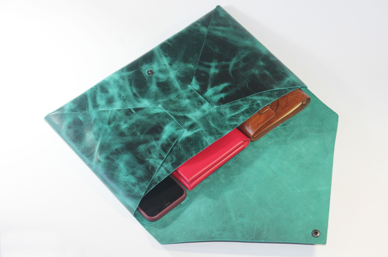 Докато снимах чантата, се качих на една табуретка и по едно време се сетих, че трябва да си заредя телефона и започнах да се оглеждам къде съм го оставил. Завъртях се, поогледах се, но никъде не го видях и си казах, че после ще търся и продължих да снимам. След малко поглеждам през обектива и виждам… телефона вътре в чантата. Явно чантата върши работата си – събира всичко необходимо, а понякога дори и нещата, които после тръгваш да търсиш. Това е модел с изчистена форма, наподобяваща плик, но с достатъчно пространство за ежедневните неща, които носим със себе си. ☑️Изработена от трикратен световен рекордьор в областта на оригами изкуството ☑️Без шевове и лепене, което гарантира за по-дълъг живот на чантата ☑️Направена само от едно парче кожа, с помощта на оригами техника ☑️Изцяло ръчна изработка от естествена кожа ☑️Разполага с едно голямо отделение за телефон, таблет, тефтер и портфейл