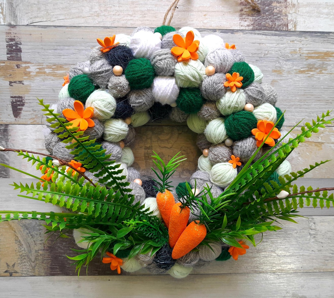Пролетен венец - различен и необичаен. Ръчно изработен пролетен венец от навити топчета от прежда, съчетаващ свежи цветове и интересна текстура. Нестандартна декорация, която носи настроение и пролетно усещане във всеки дом. Подходящ за украса на врата, стена или кът в дома, а необичайният му вид го прави истински акцент, който няма как да остане незабелязан. Всеки венец е изработен с внимание към детайла и е напълно уникален.
