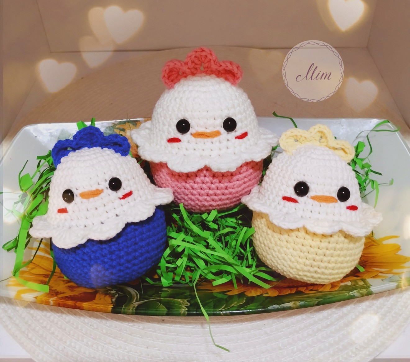 Малки сладки плетени пиленца за украса за Великден. Височина 10 см.